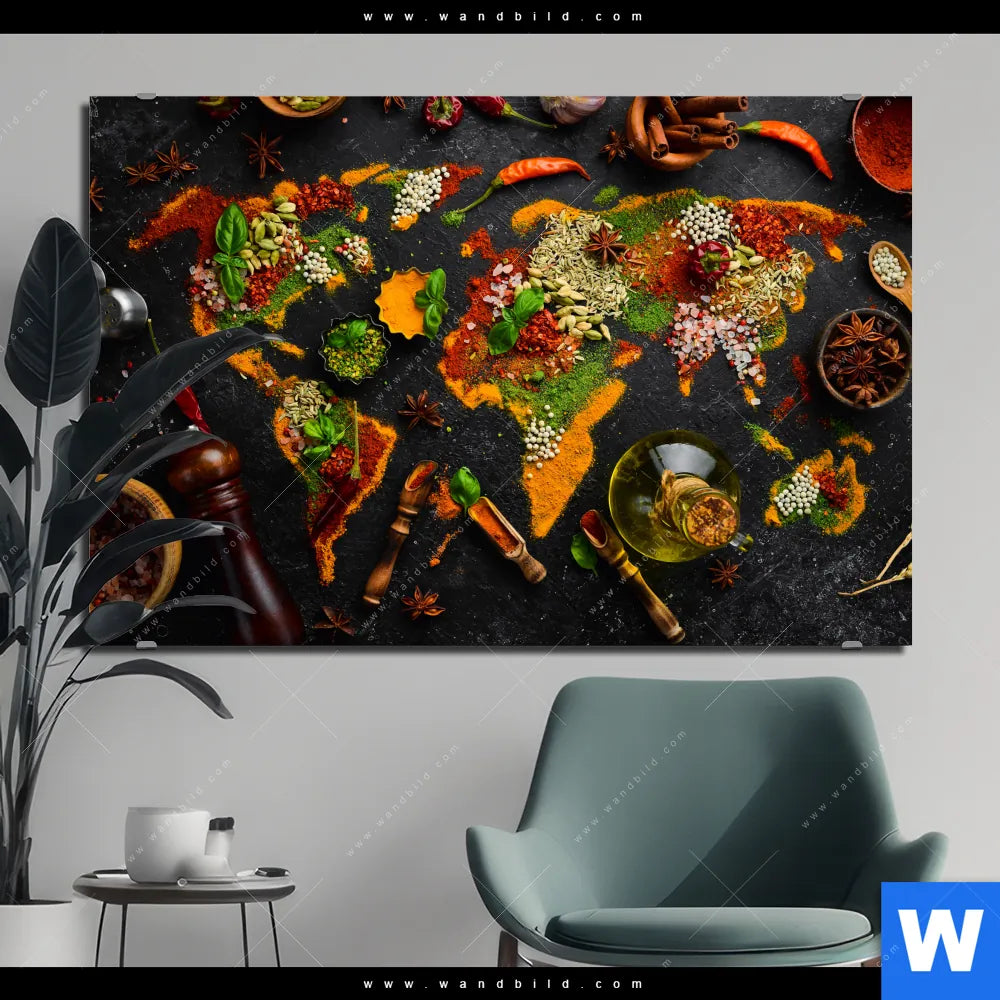 Alu-Dibond Bild | Die Weltkarte der Gewürze | Querformat