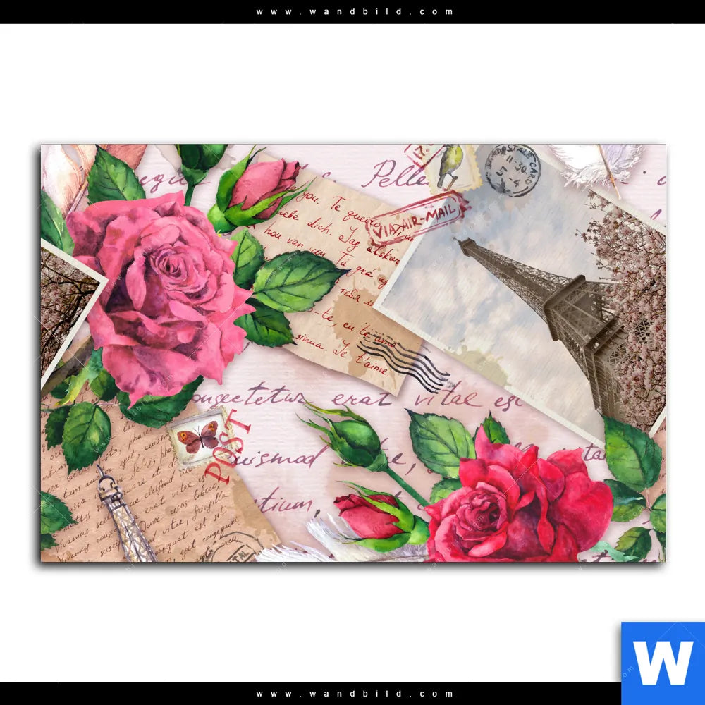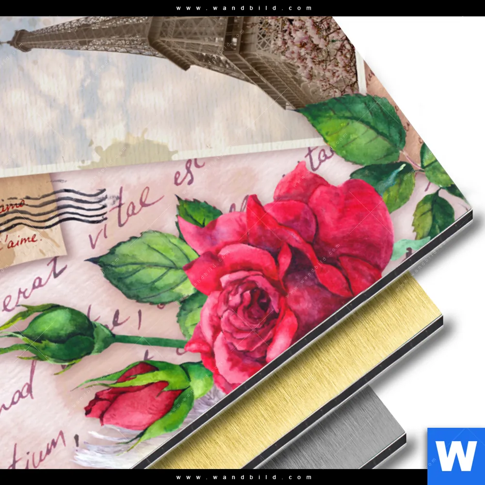 Alu-Dibond Bild | Eifelturm & Rosen | Querformat