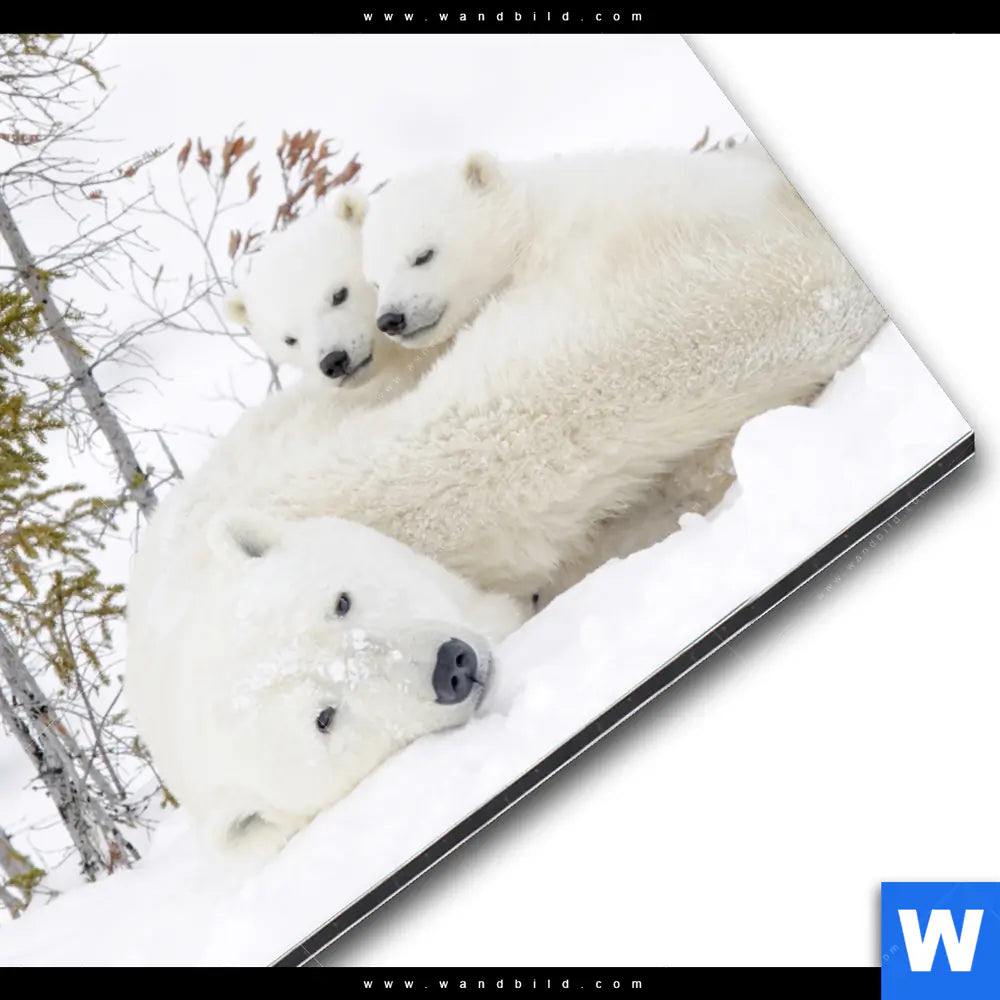 Alu-Dibond Bild | Eisbärenfamilie in winterlicher Landschaft | Quadrat