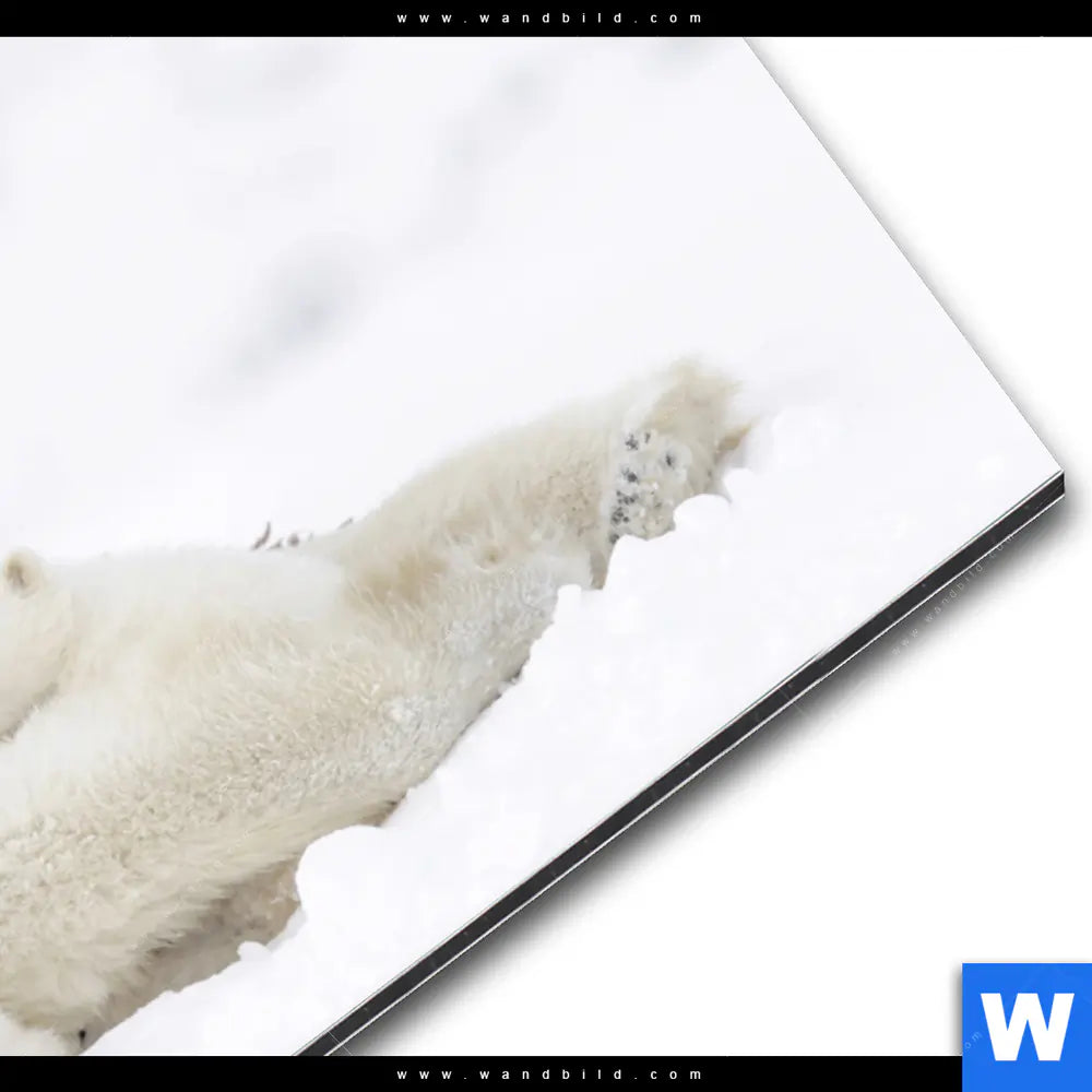 Alu-Dibond Bild | Eisbärenfamilie in winterlicher Landschaft | Querformat