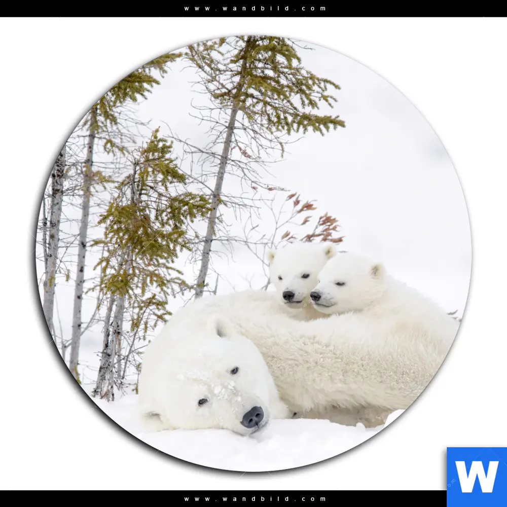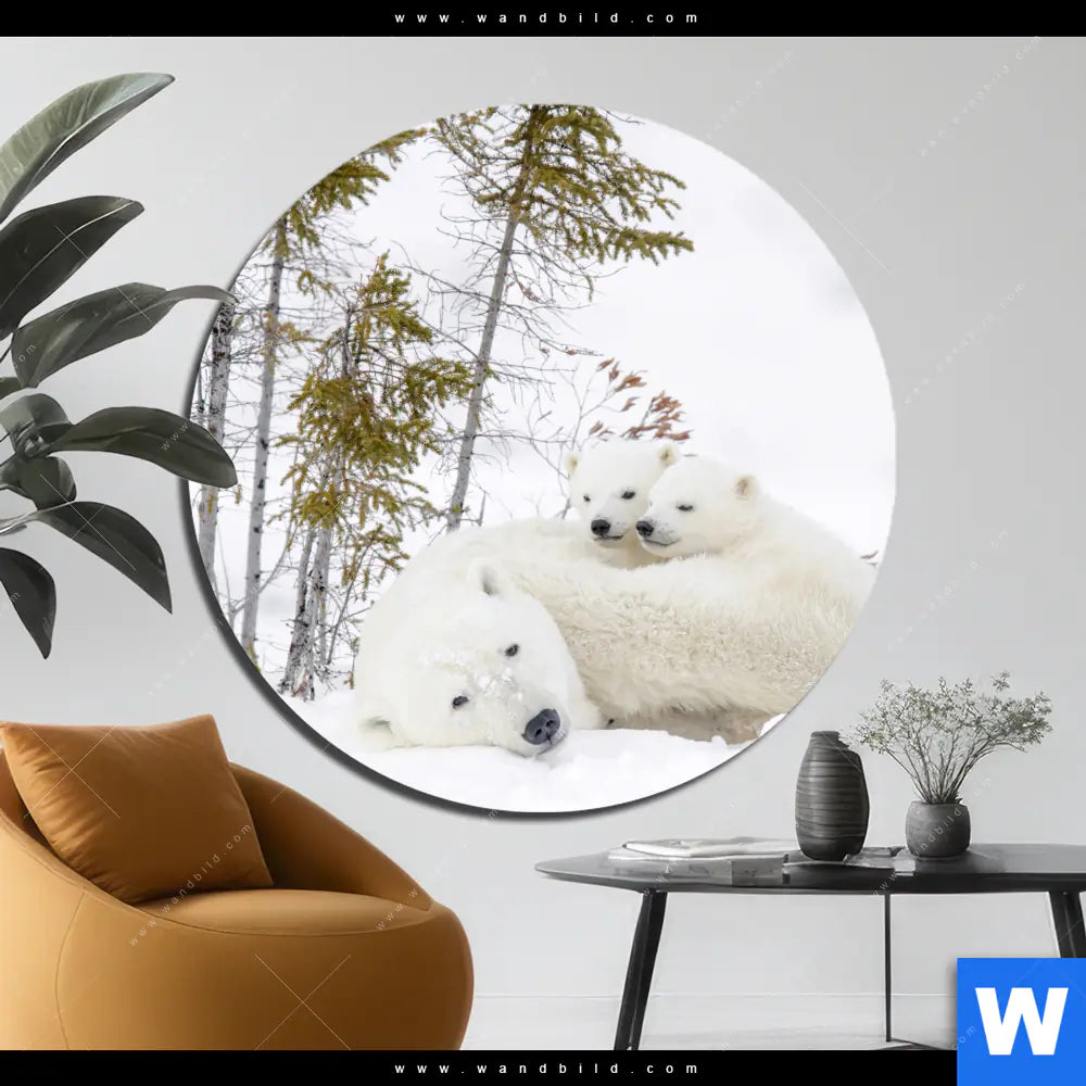 Alu-Dibond Bild | Eisbärenfamilie in winterlicher Landschaft | Rund