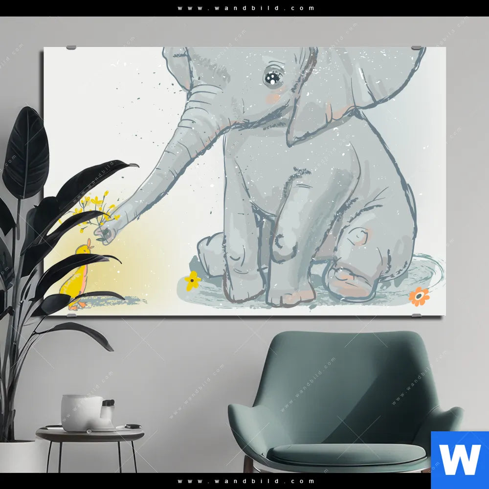 Alu-Dibond Bild | Elefant & Entlein | Querformat