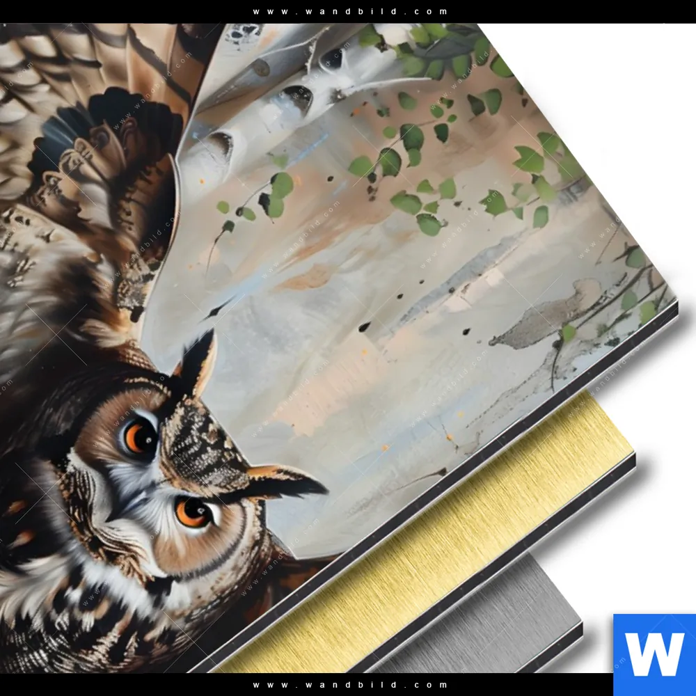 Alu-Dibond Bild | Eule im Birkenwald | Hochformat