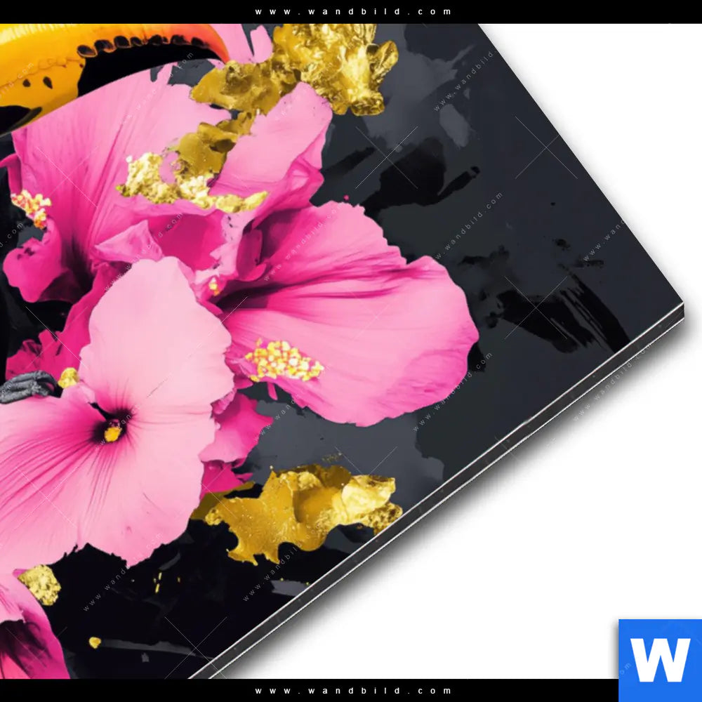 Alu-Dibond Bild | Exotischer Tukan mit Blüten | Querformat