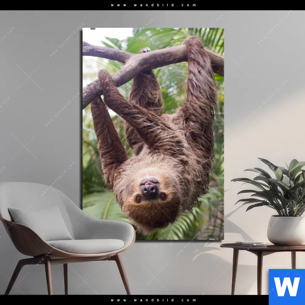 Alu-Dibond Bild | Faultier streckt Zunge raus | Hochformat