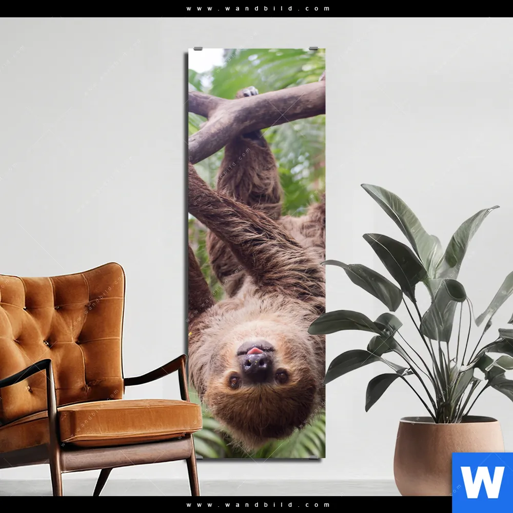 Alu-Dibond Bild | Faultier streckt Zunge raus | Schmal