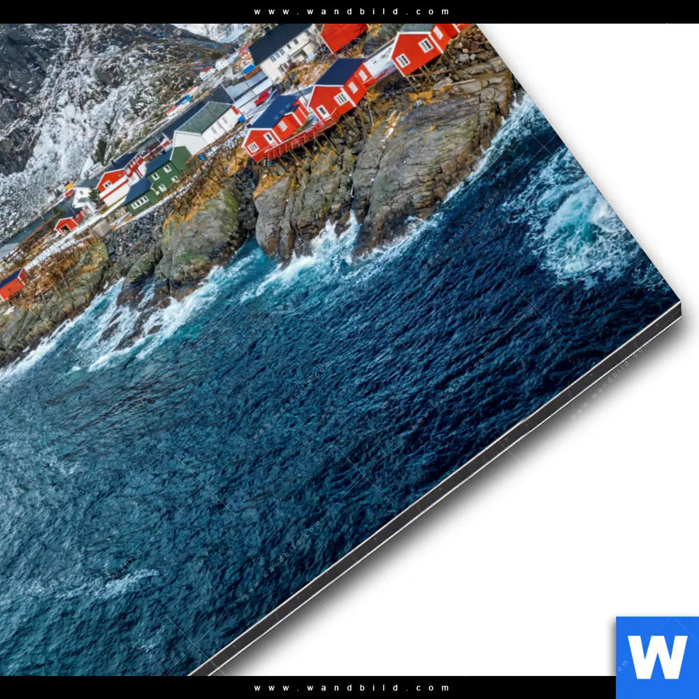 Alu-Dibond Bild | Fischerdorf mit roten Häusern | Quadrat