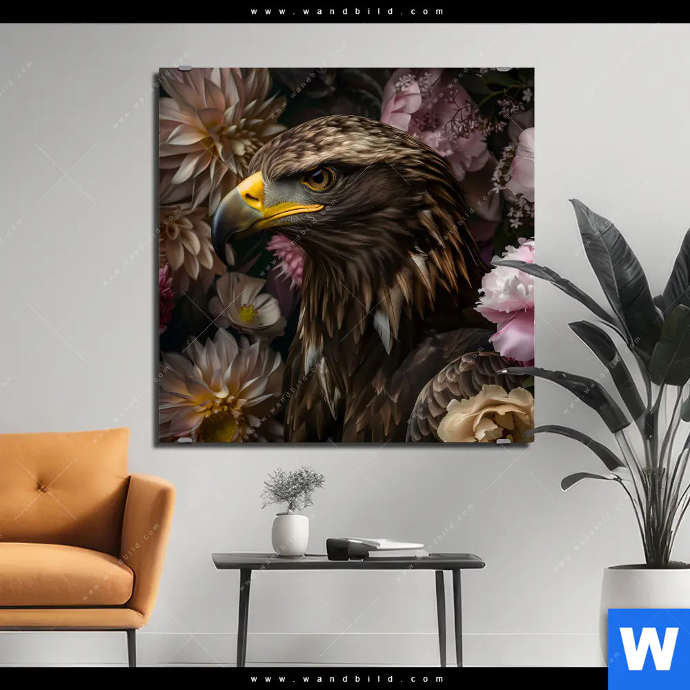 Alu-Dibond Bild | Florale Eleganz und Adlerblick | Quadrat