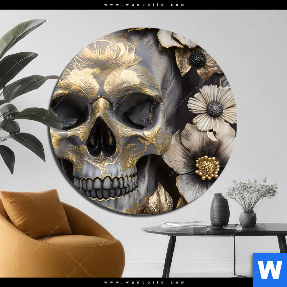 Alu-Dibond Bild | Floraler Totenschädel | Rund