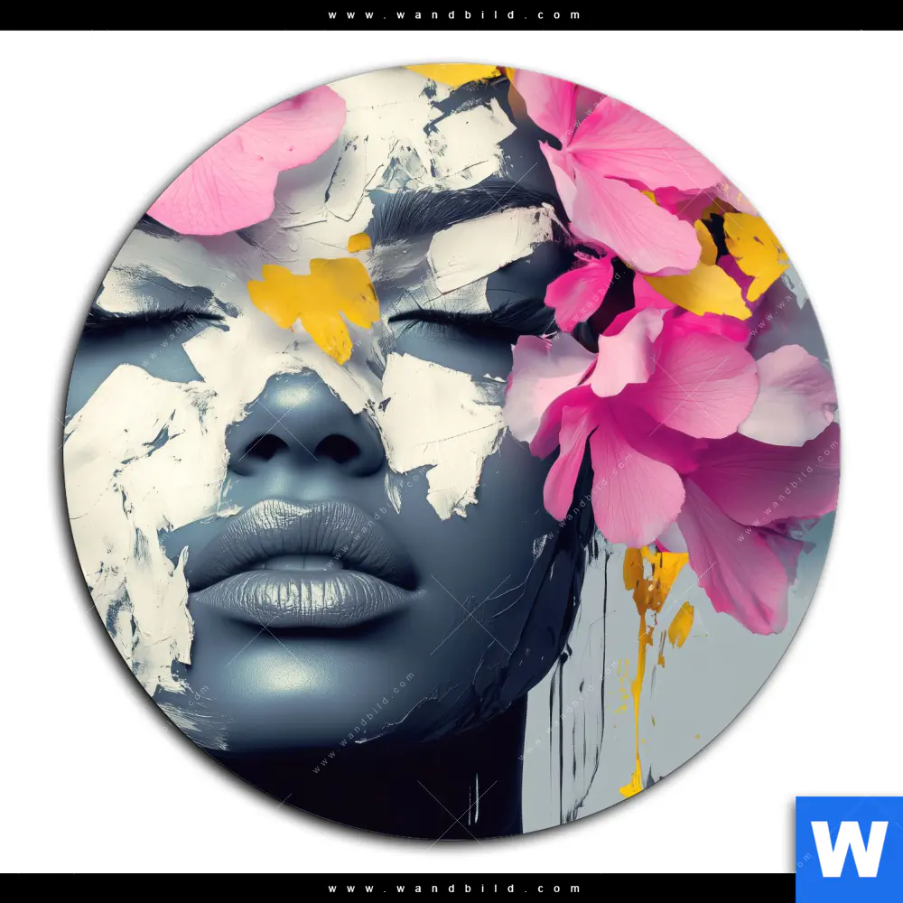 Alu-Dibond Bild | Florales Porträt Design | Rund