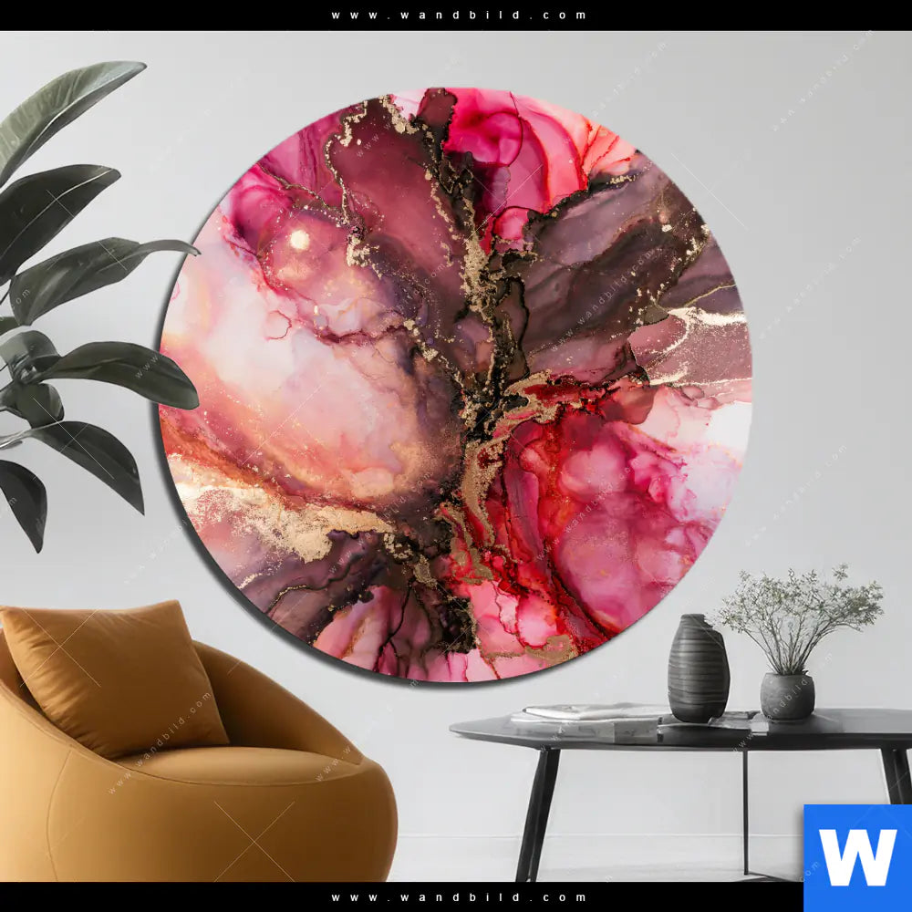 Alu-Dibond Bild | Fluid Art Rot & Braun | Rund