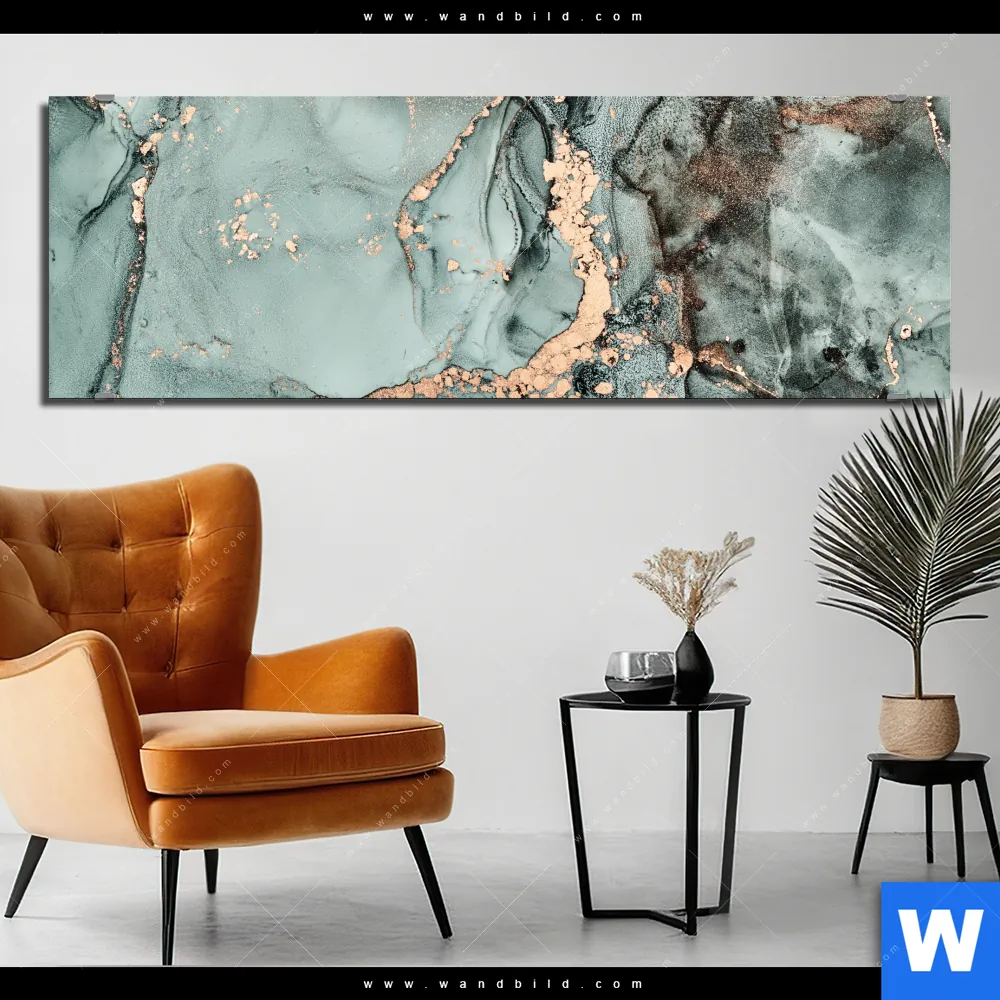 Alu-Dibond Bild | Fluid Art Türkis | Panorama