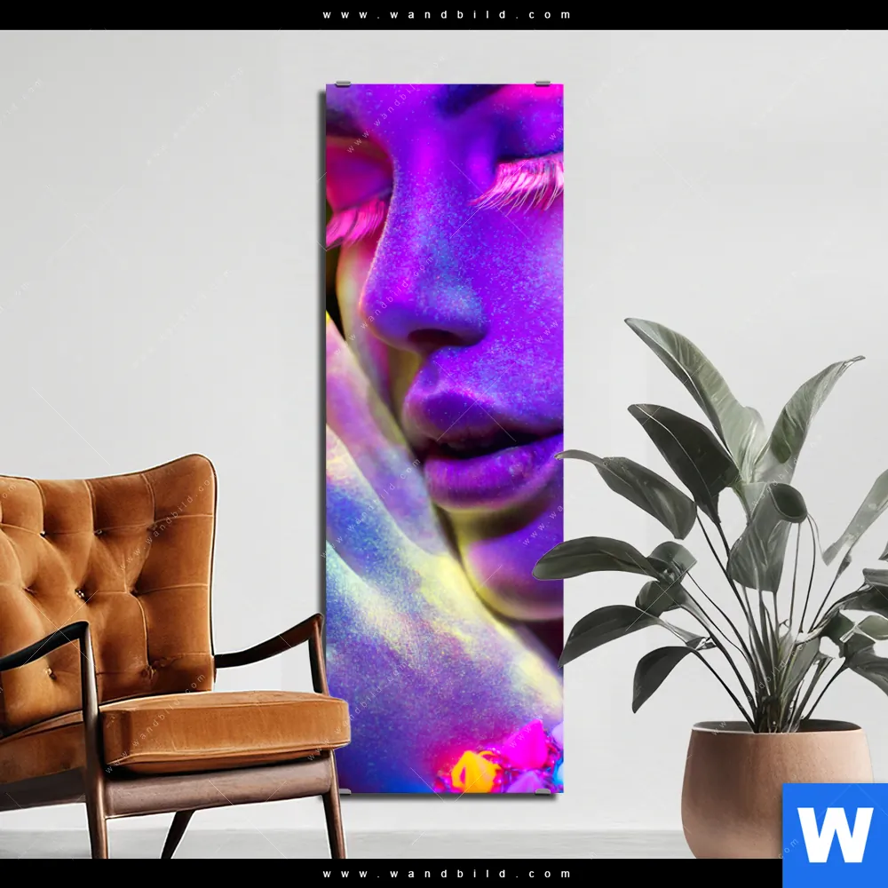 Alu-Dibond Bild | Frau im Neonlicht | Schmal