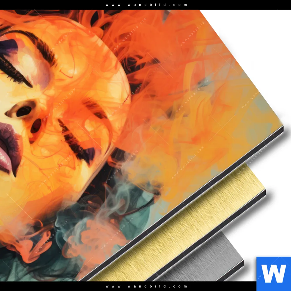 Alu-Dibond Bild | Frau mit buntem Rauch | Hochformat