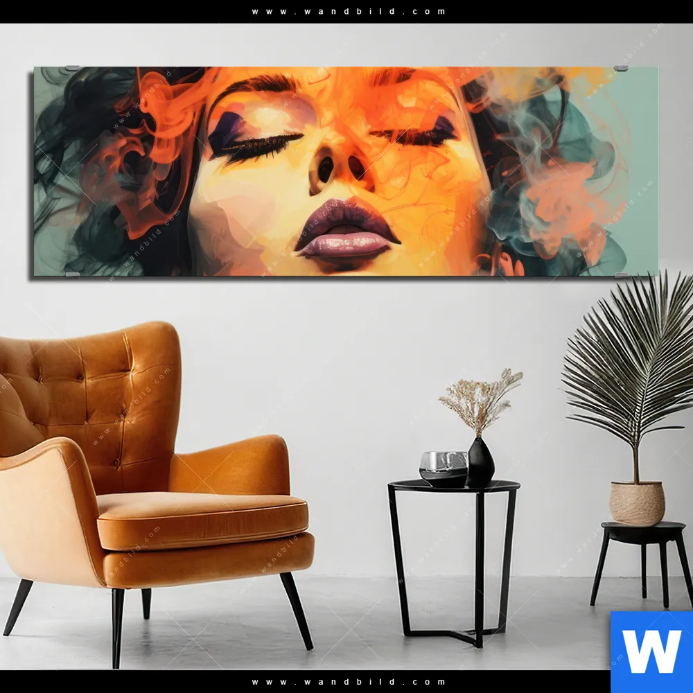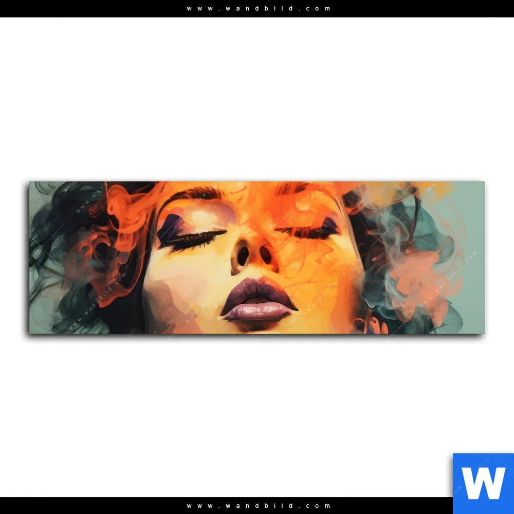 Alu-Dibond Bild | Frau mit buntem Rauch | Panorama