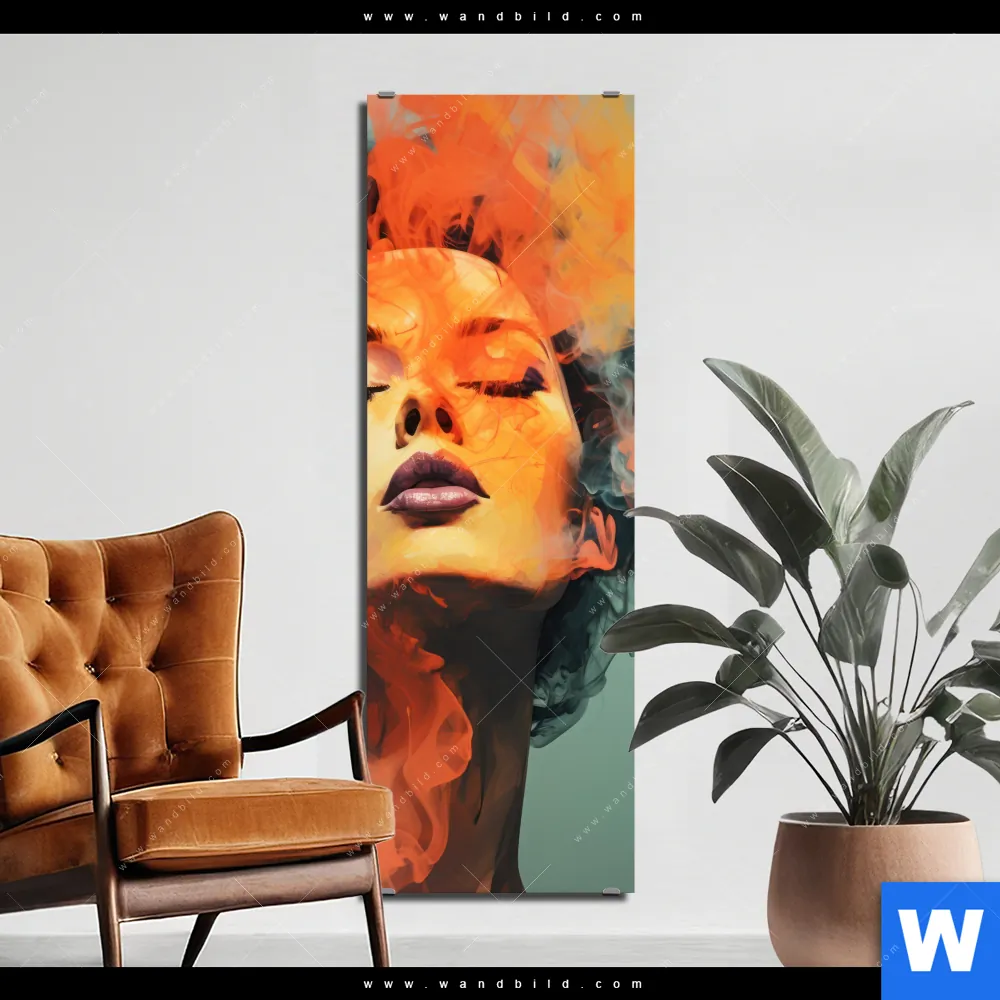 Alu-Dibond Bild | Frau mit buntem Rauch | Schmal