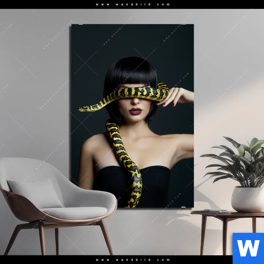 Alu-Dibond Bild | Frau mit gelber Schlange | Hochformat
