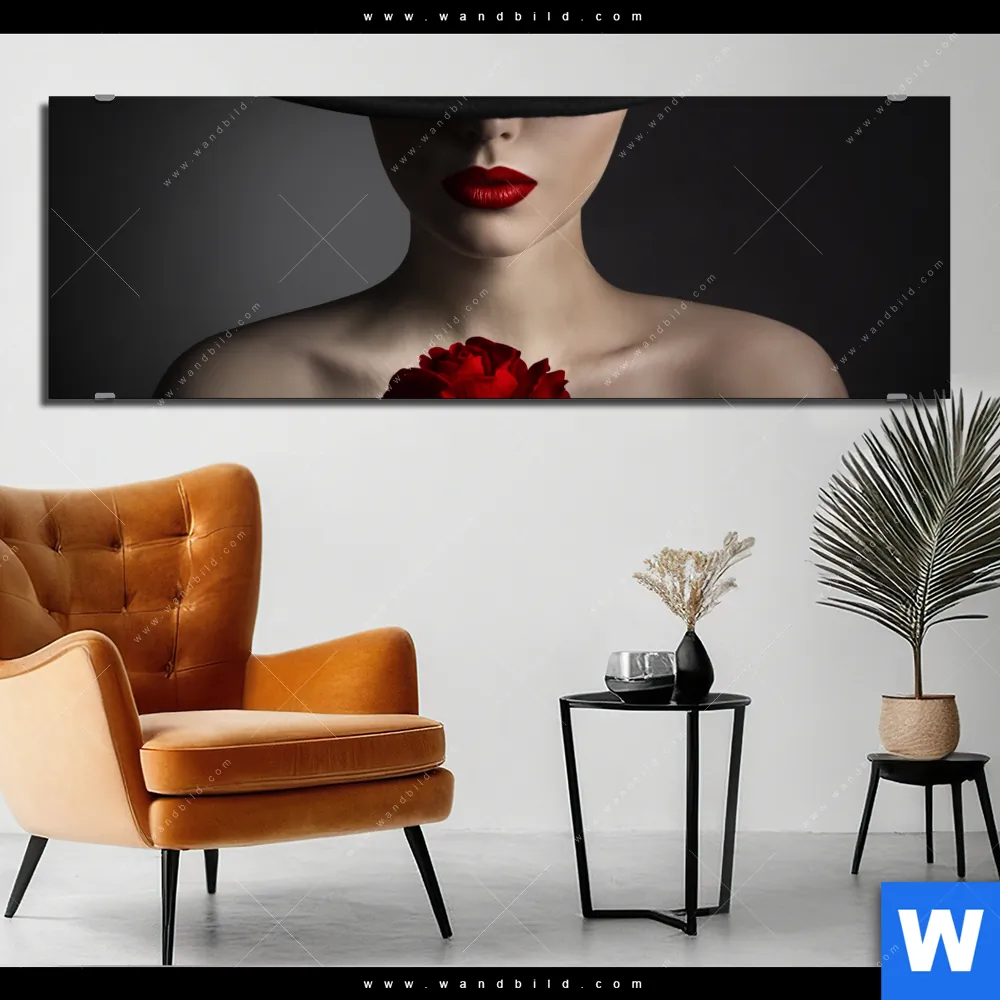 Alu-Dibond Bild | Frau mit Hut & Rose | Panorama