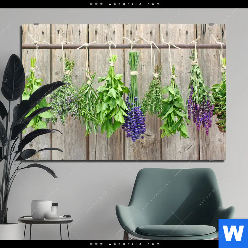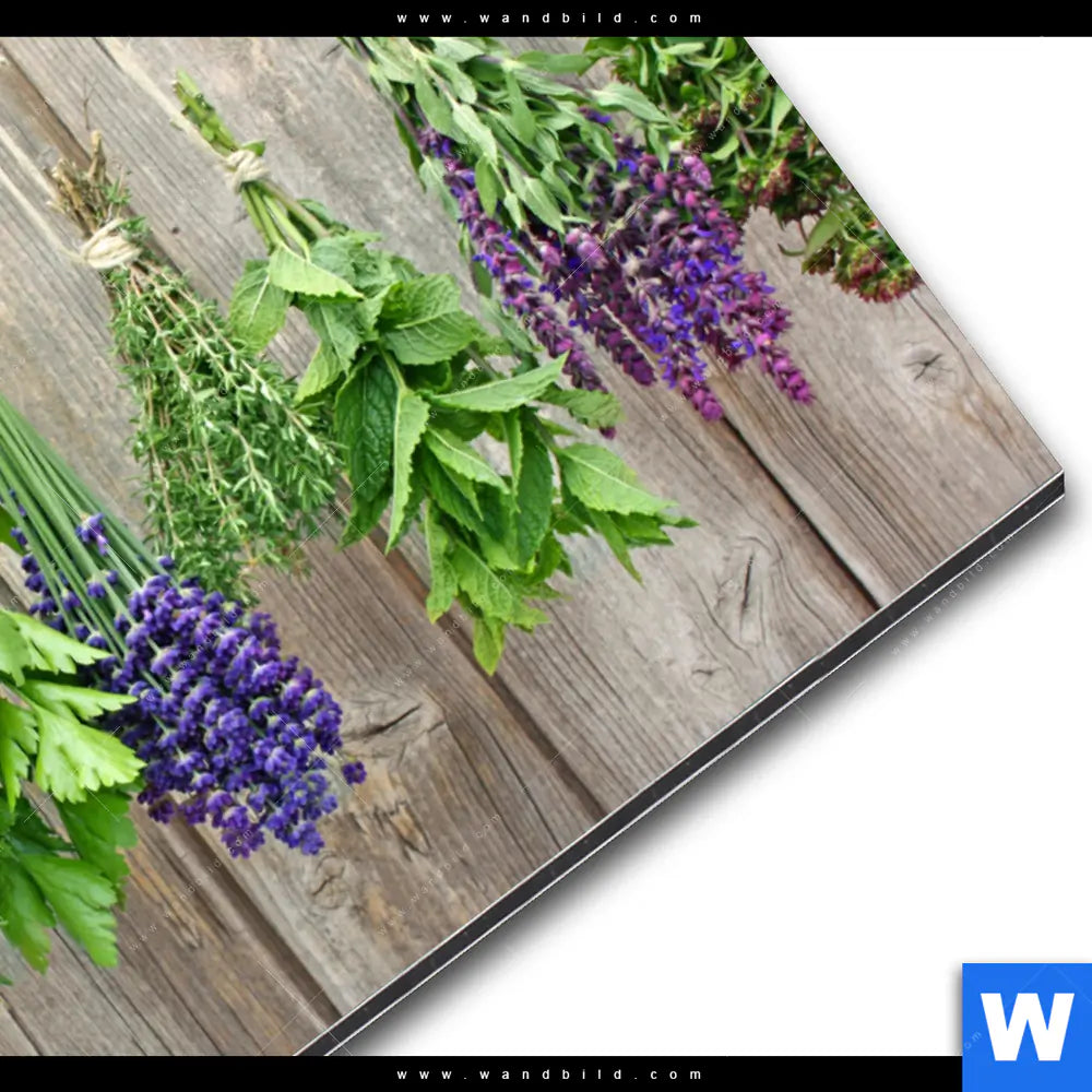 Alu-Dibond Bild | Frische Kräuter an Holzstange | Querformat
