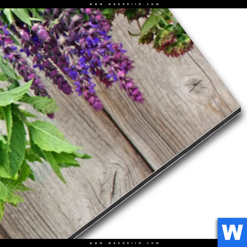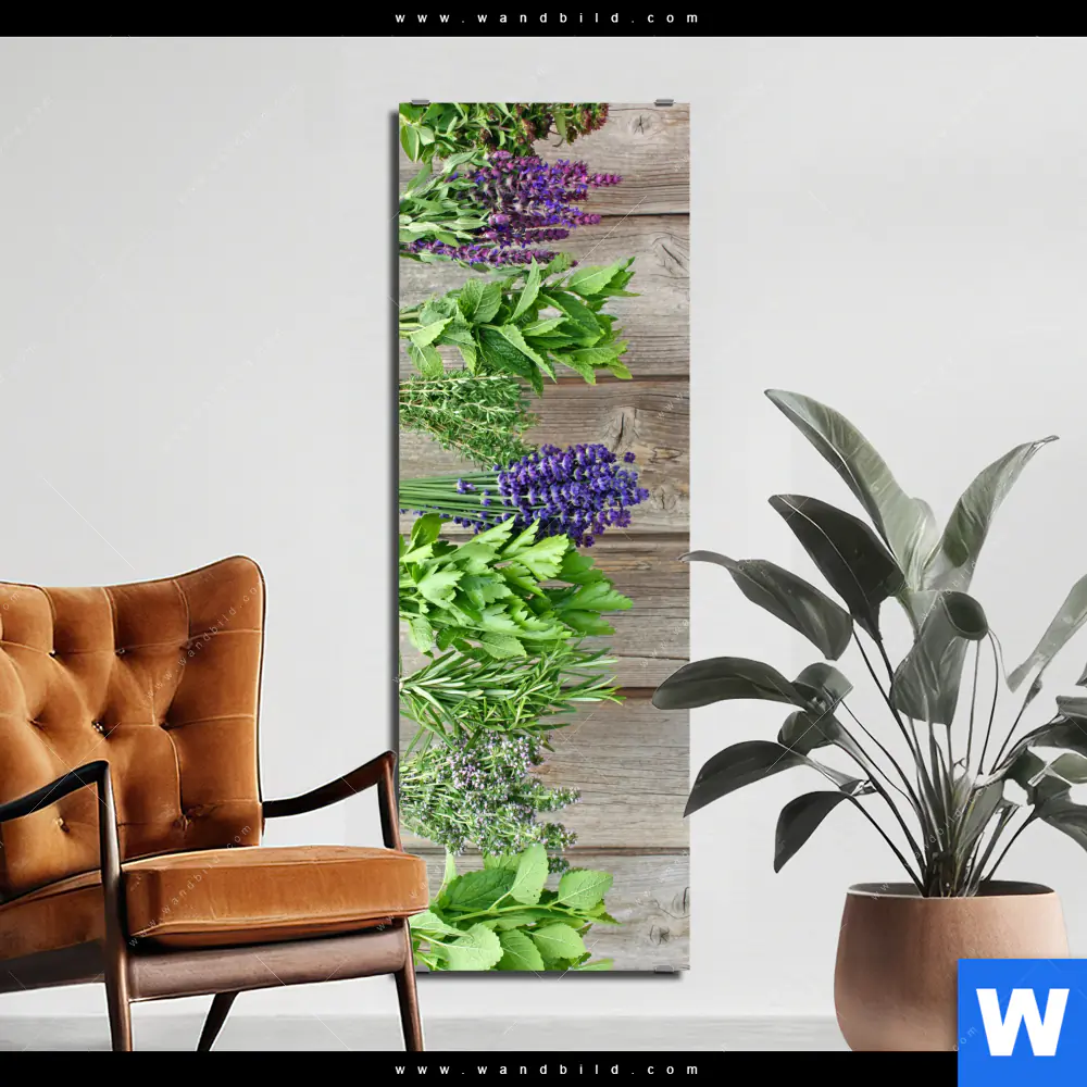 Alu-Dibond Bild | Frische Kräuter an Holzstange | Schmal