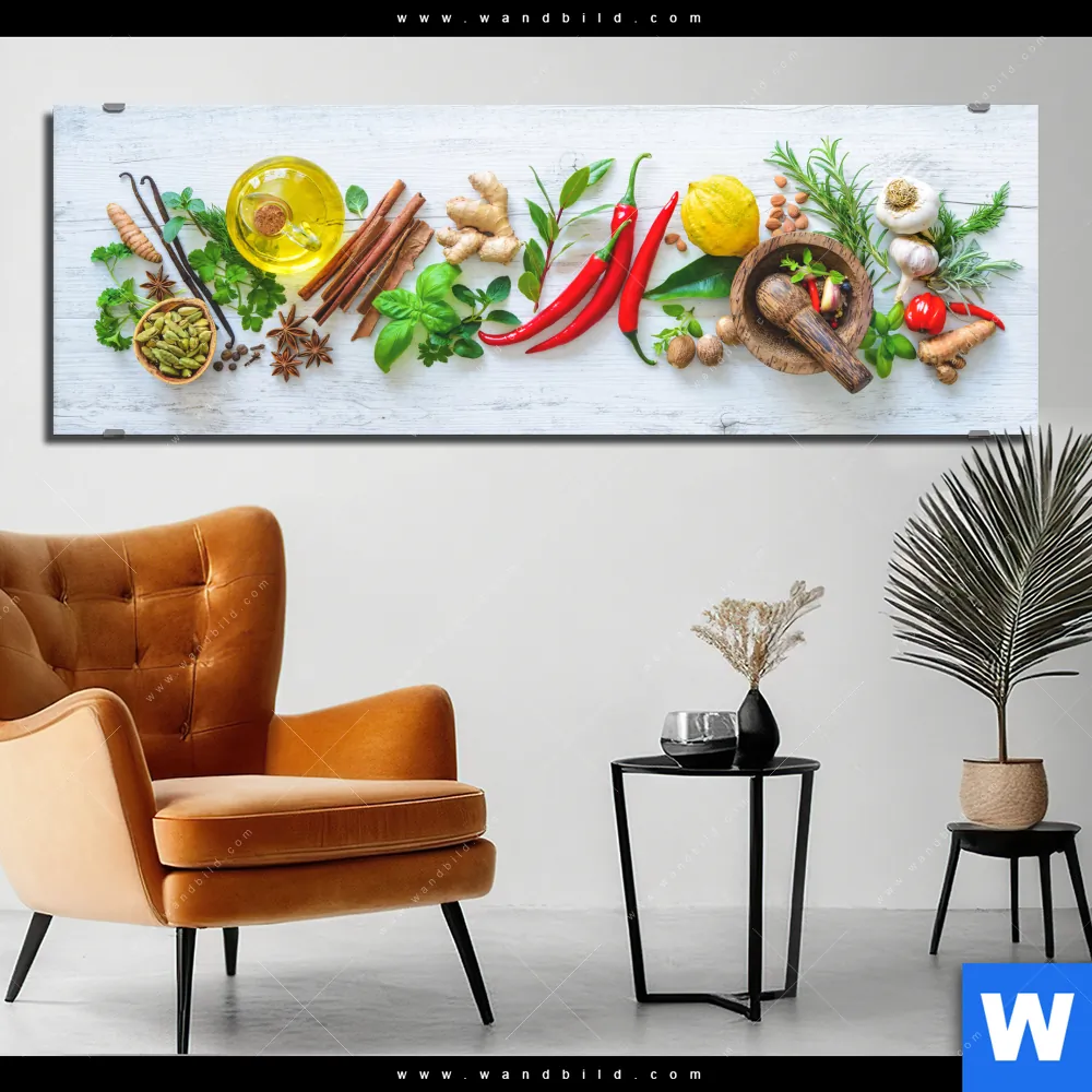 Alu-Dibond Bild | Frische Kräuter & Gewürze | Panorama
