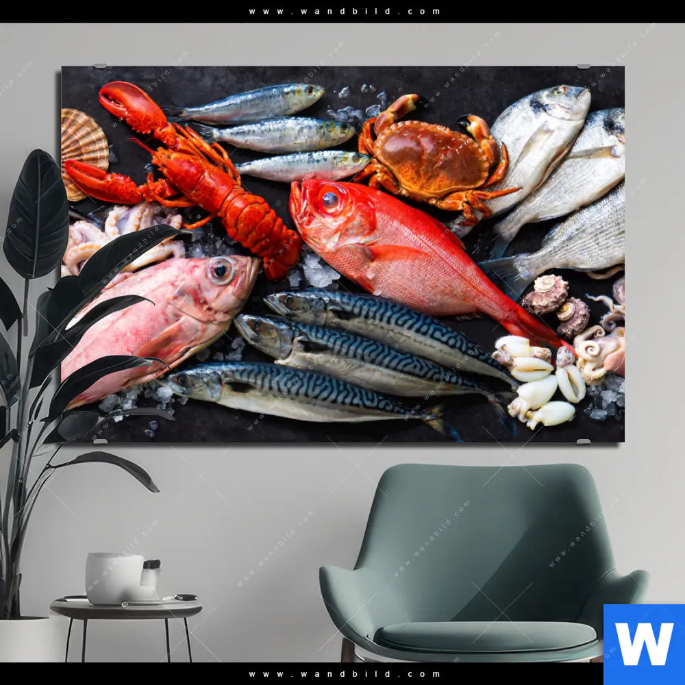 Alu-Dibond Bild | Frischer Fisch und Meeresfrüchte | Querformat