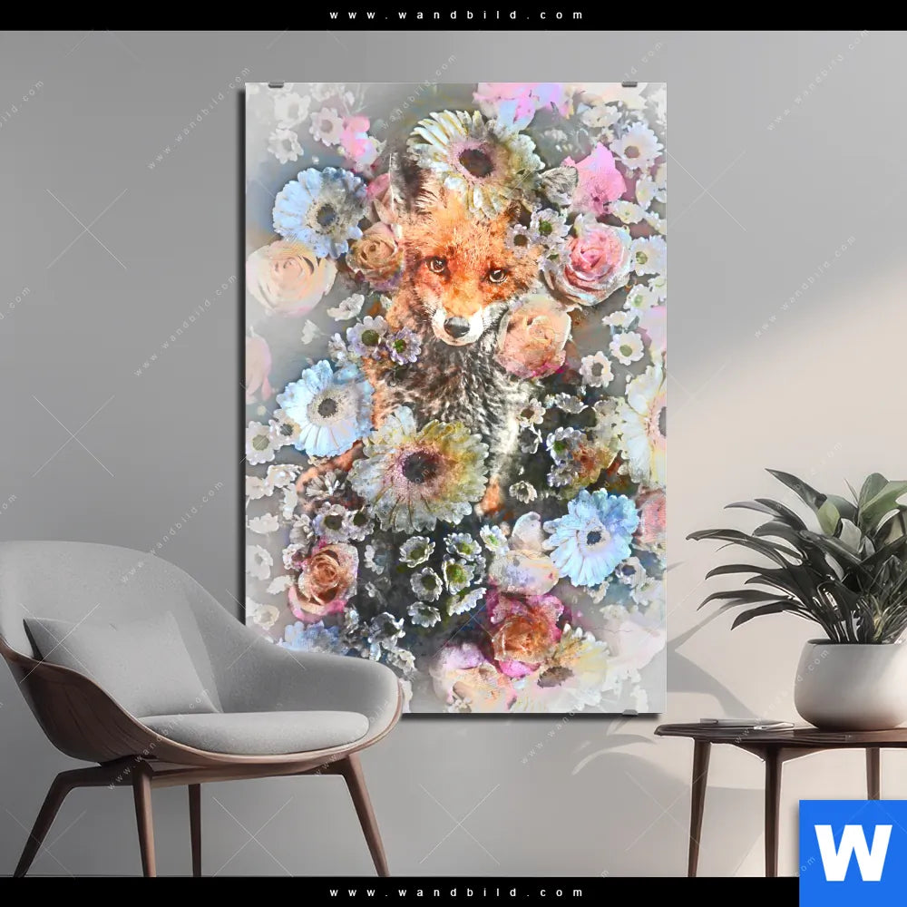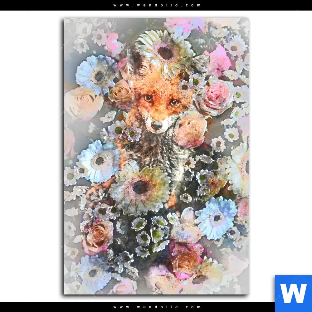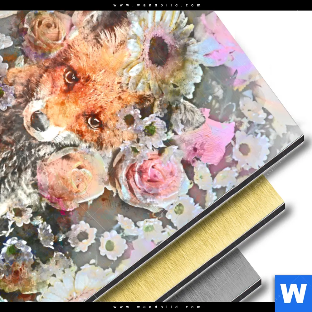 Alu-Dibond Bild | Fuchs & Blumen | Hochformat