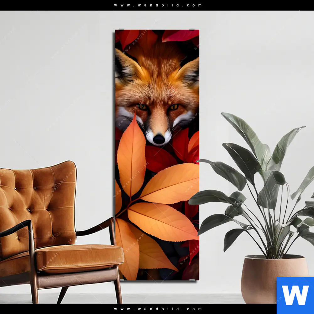 Alu-Dibond Bild | Fuchs im Herbstlaub | Schmal