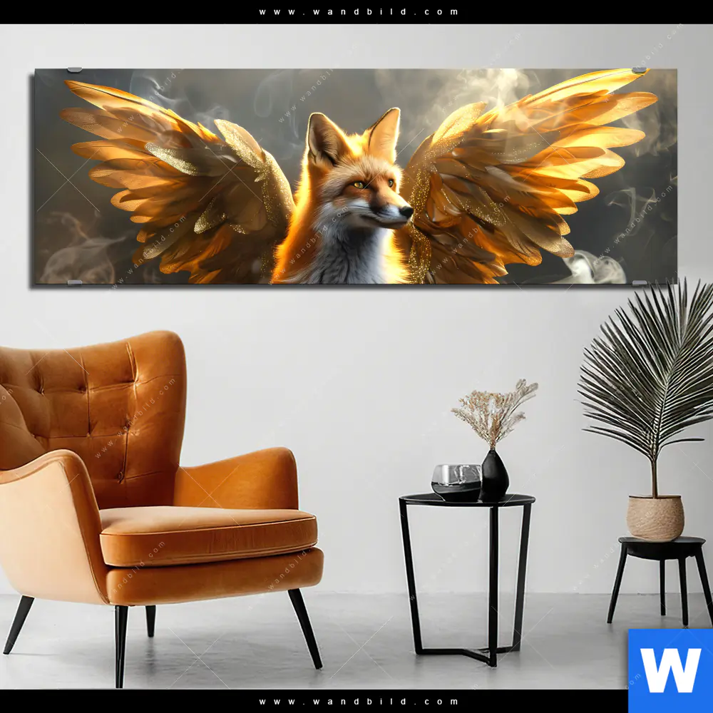 Alu-Dibond Bild | Fuchs mit goldenen Flügeln | Panorama