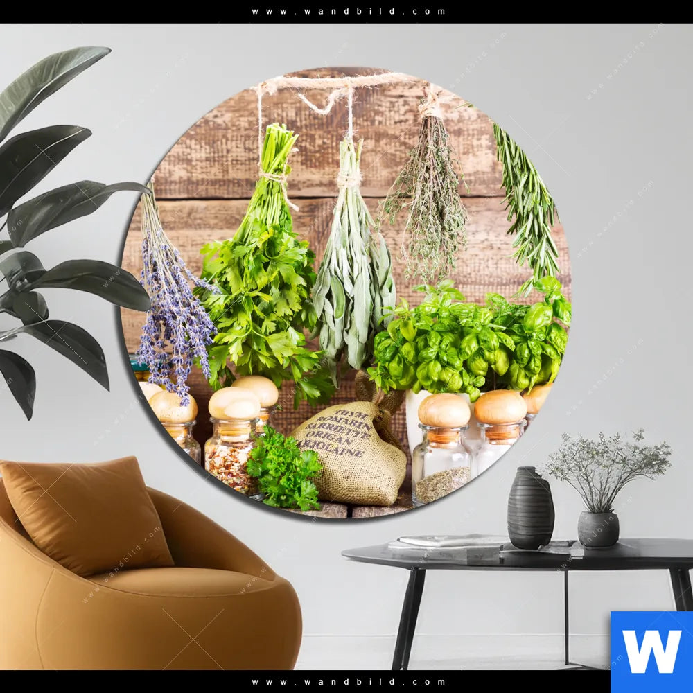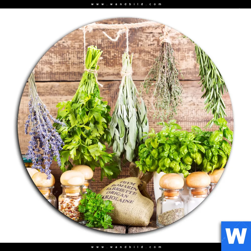 Alu-Dibond Bild | Getrocknete Kräuter | Rund