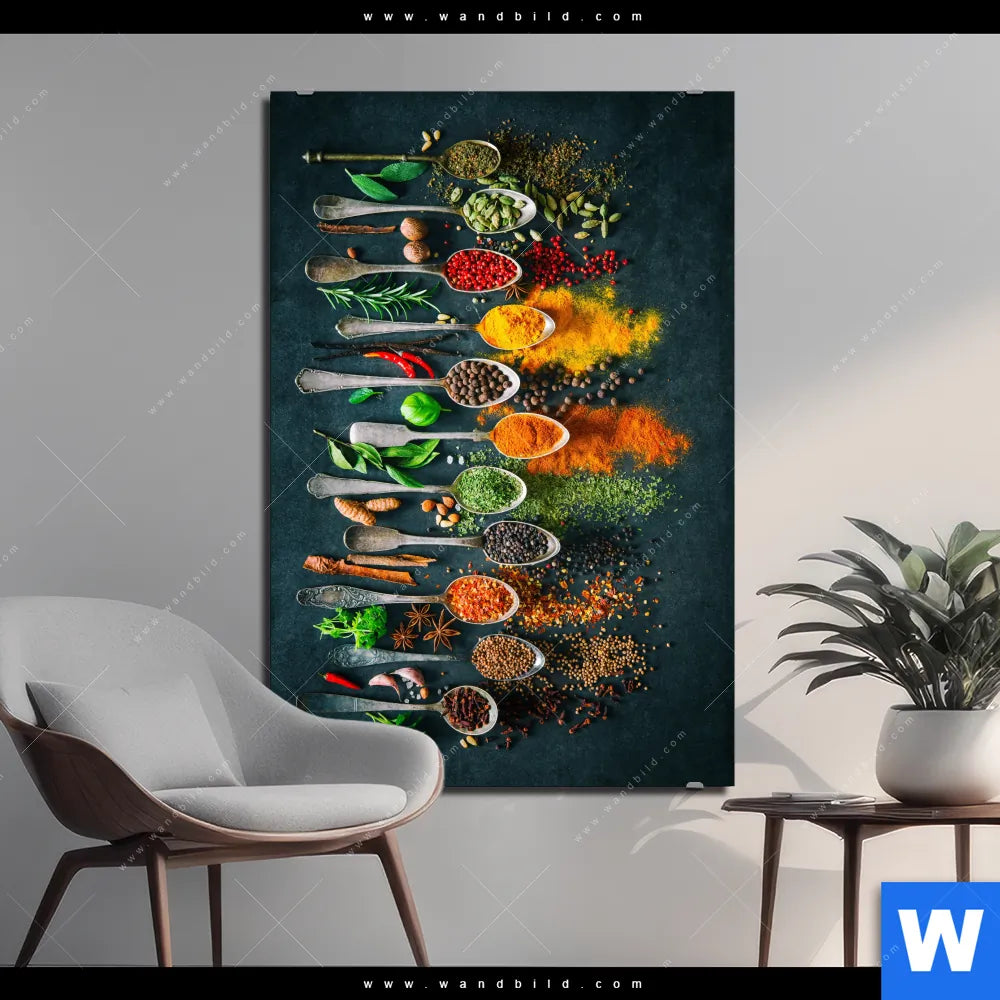 Alu-Dibond Bild | Gewürze auf Löffeln | Hochformat