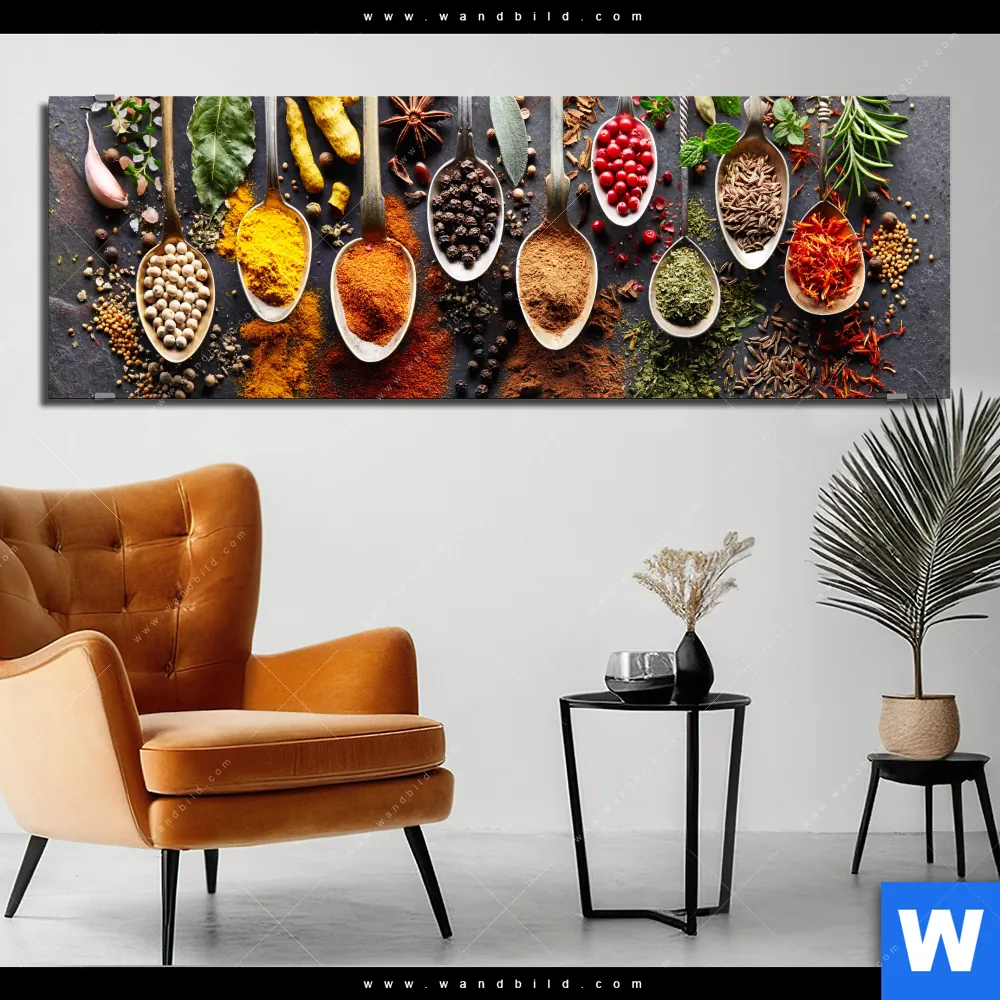 Alu-Dibond Bild | Gewürze auf Löffeln No. 2 | Panorama
