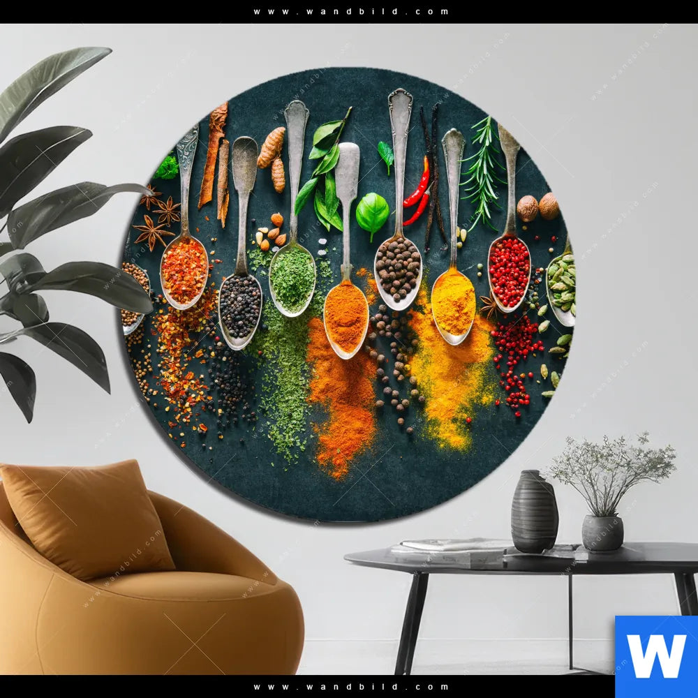 Alu-Dibond Bild | Gewürze auf Löffeln | Rund