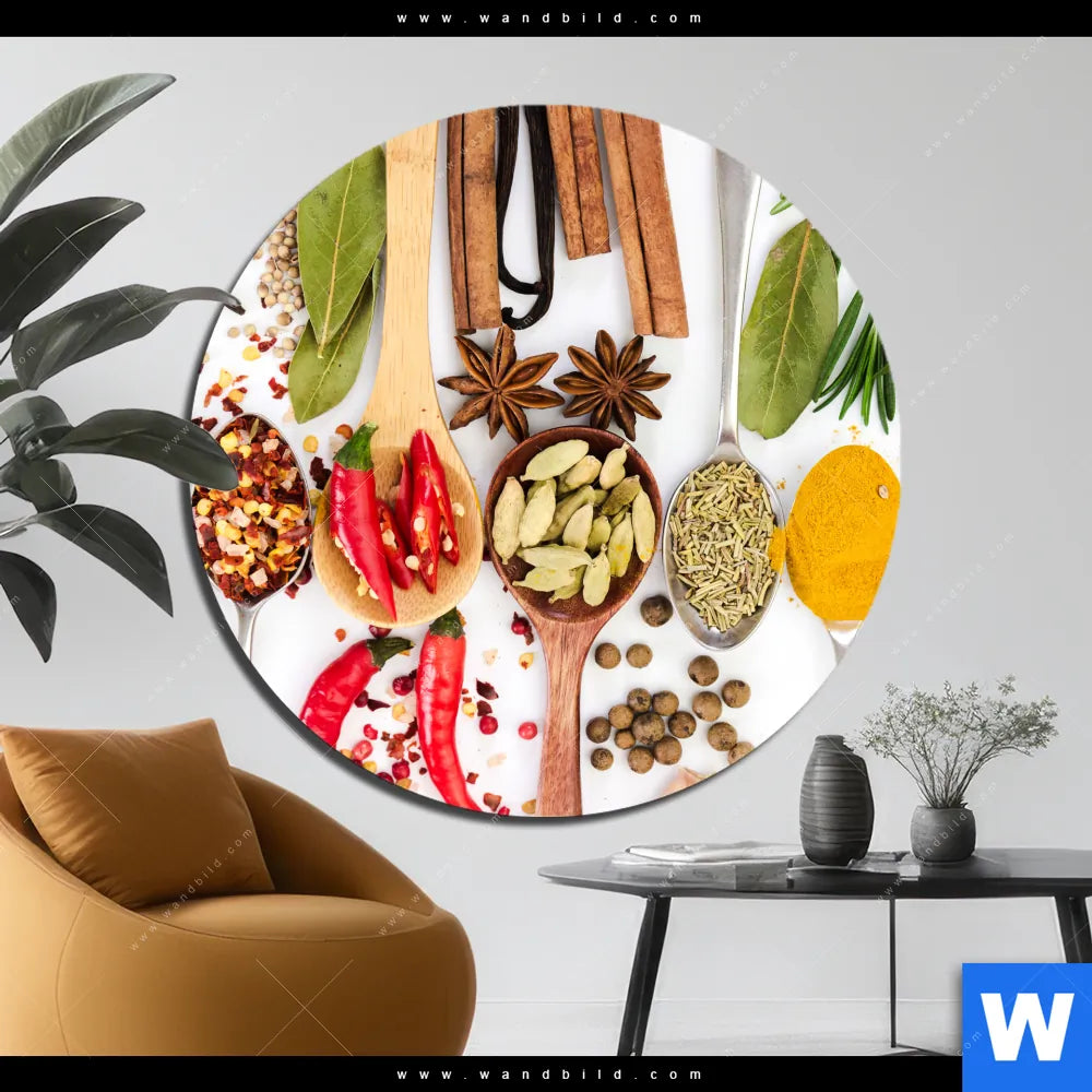 Alu-Dibond Bild | Gewürze auf Löffeln - weiß | Rund