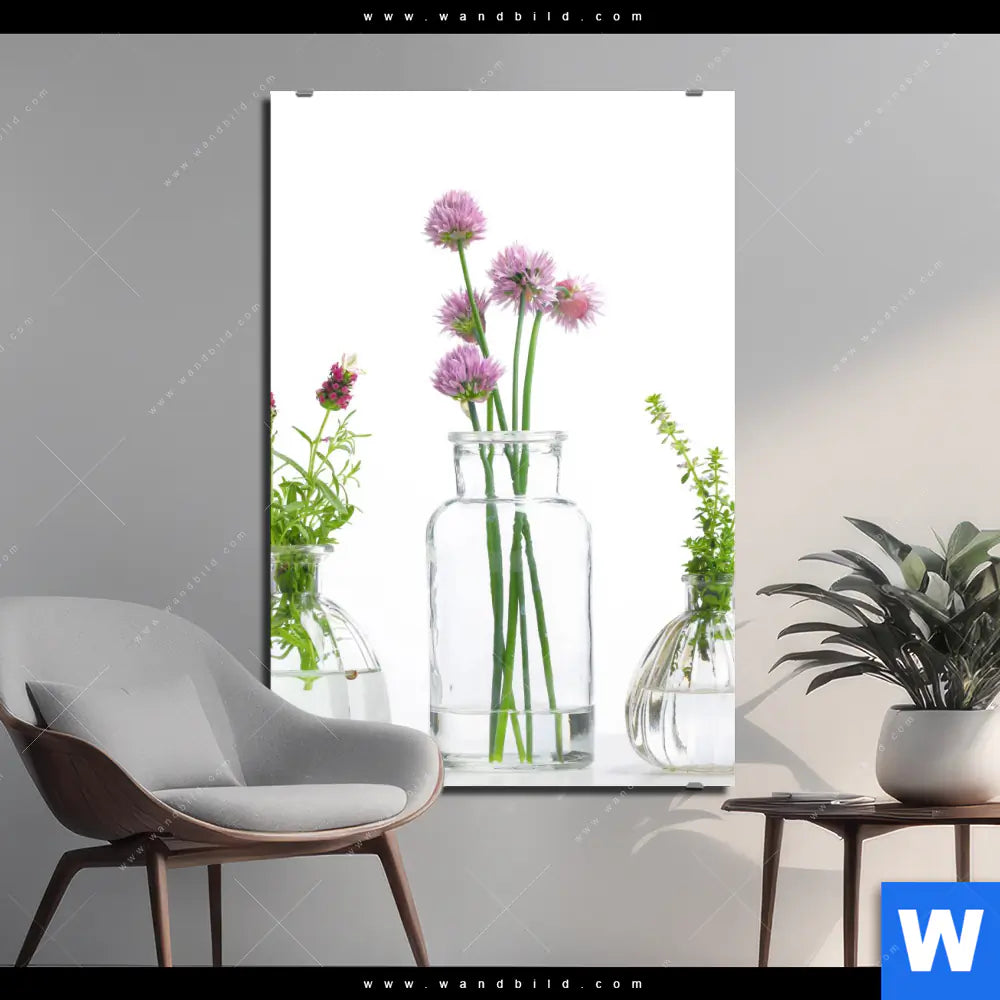 Alu-Dibond Bild | Glasvasen mit Kräutern | Hochformat