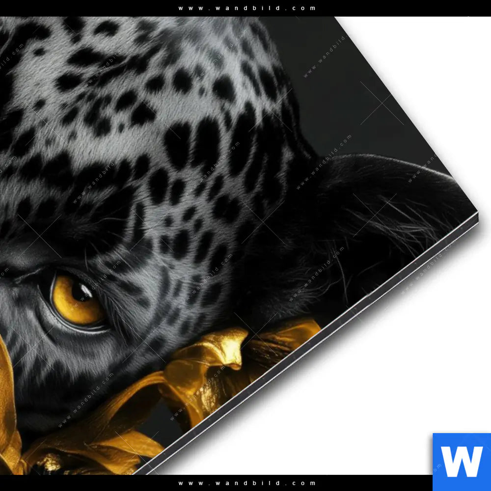 Alu-Dibond Bild | Goldblumen & Panther | Hochformat