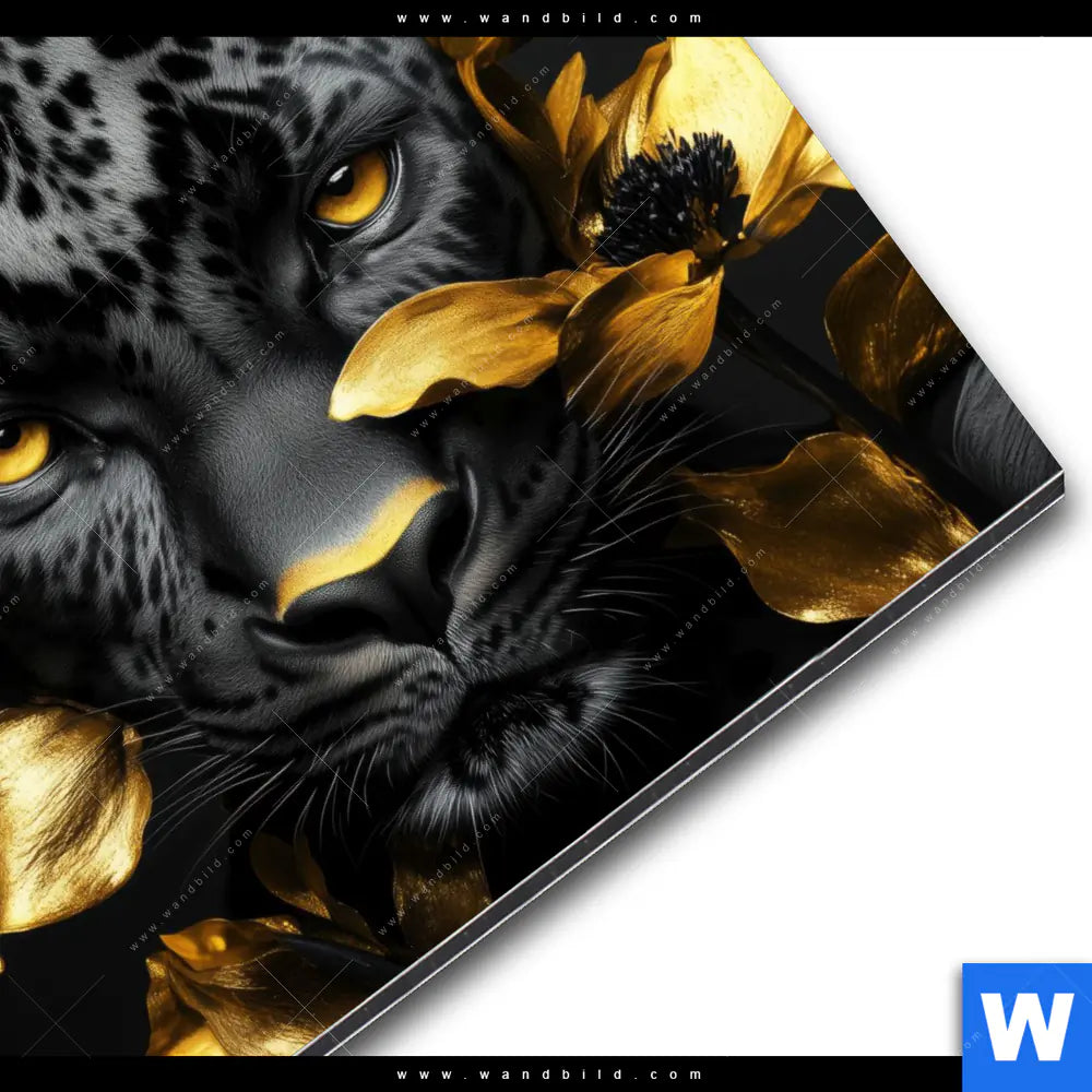 Alu-Dibond Bild | Goldblumen & Panther | Quadrat