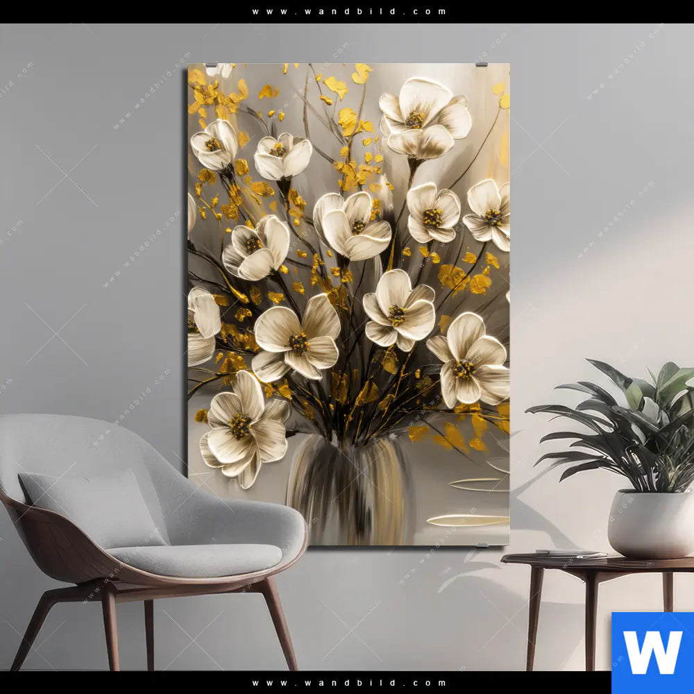 Alu-Dibond Bild | Goldene Blütenpoesie | Hochformat