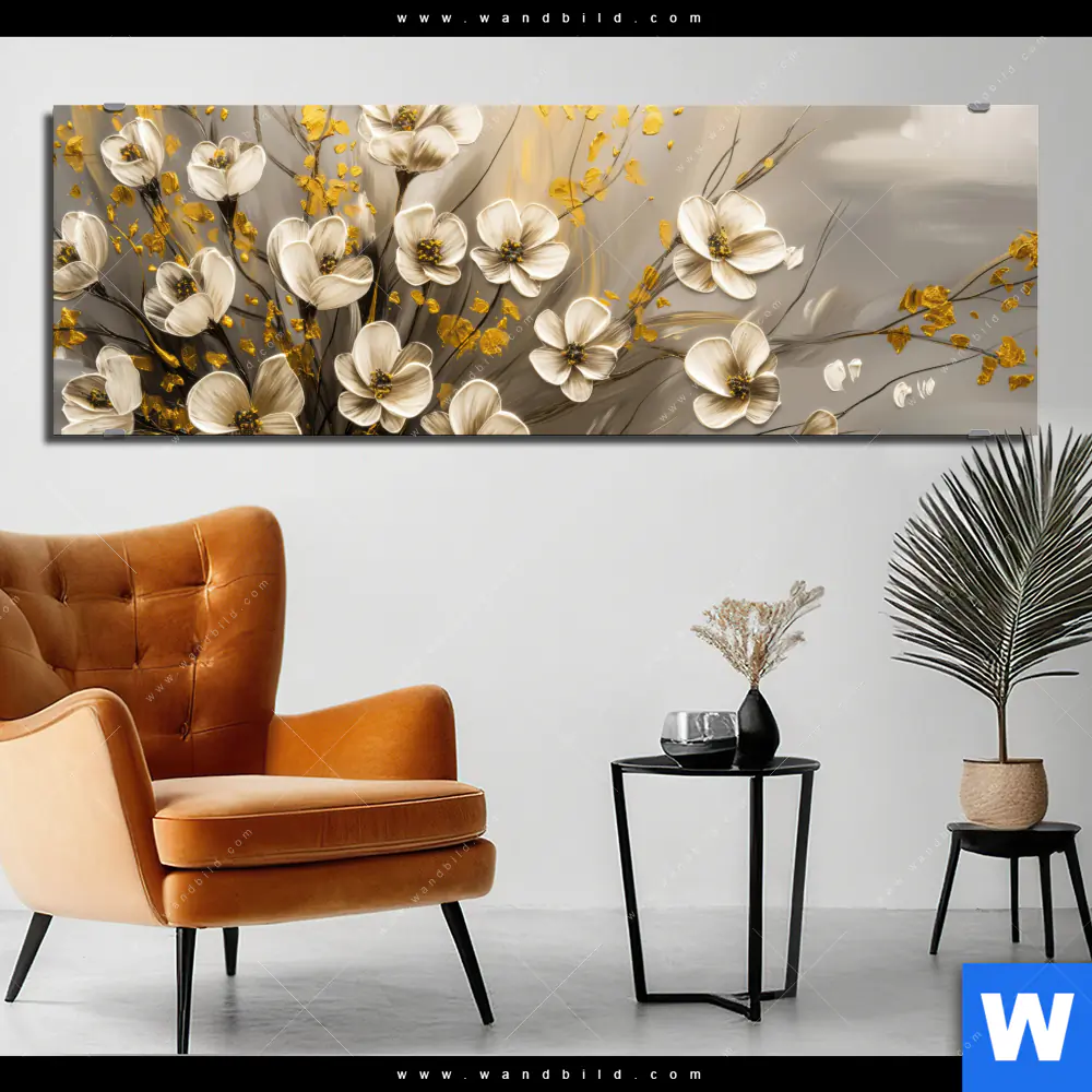 Alu-Dibond Bild | Goldene Blütenpoesie | Panorama