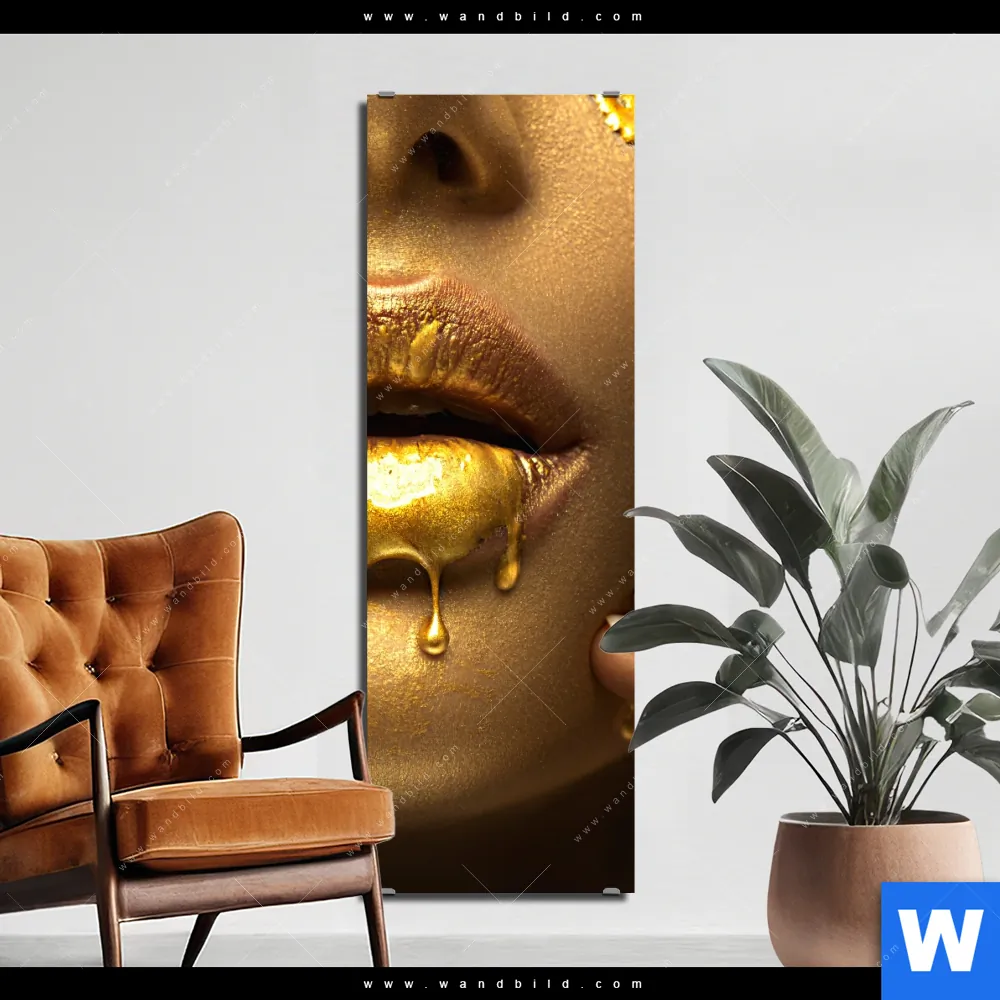 Alu-Dibond Bild | Goldene Lippen | Schmal