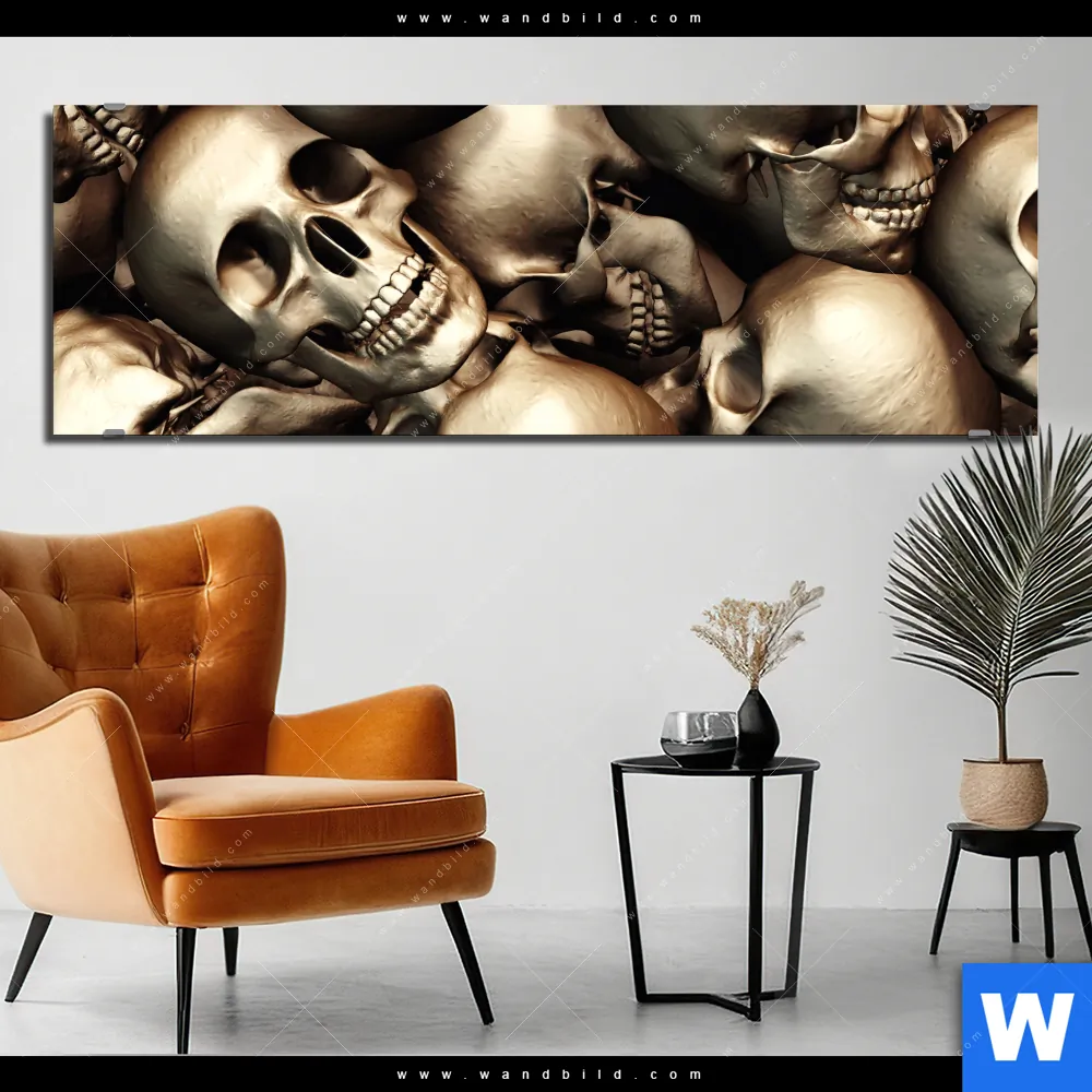 Alu-Dibond Bild | Goldene Schädel | Panorama