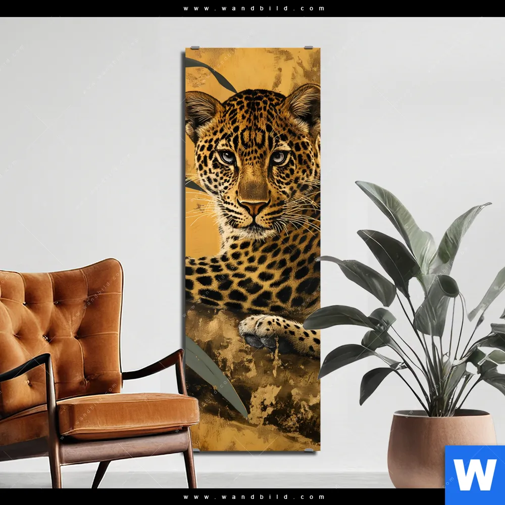 Alu-Dibond Bild | Goldener Leopard - Imposanter Jäger | Schmal