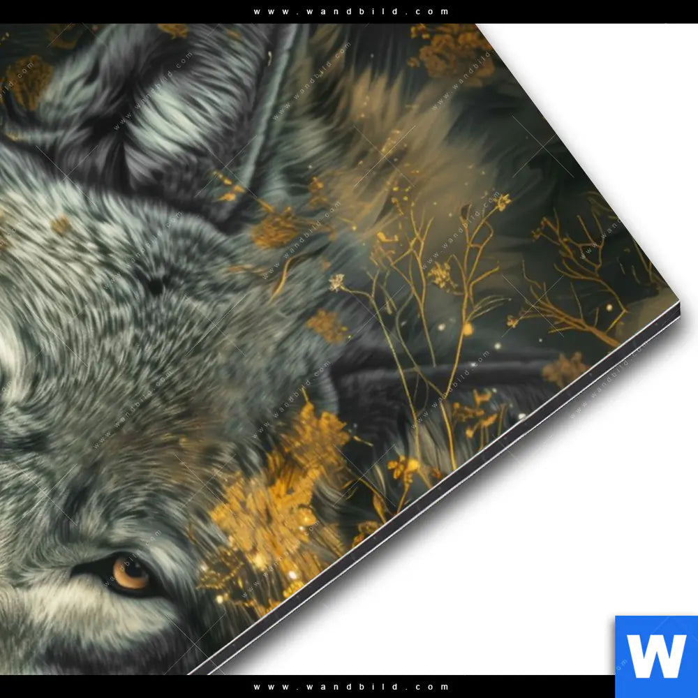 Alu-Dibond Bild | Goldener Wolfblick | Hochformat