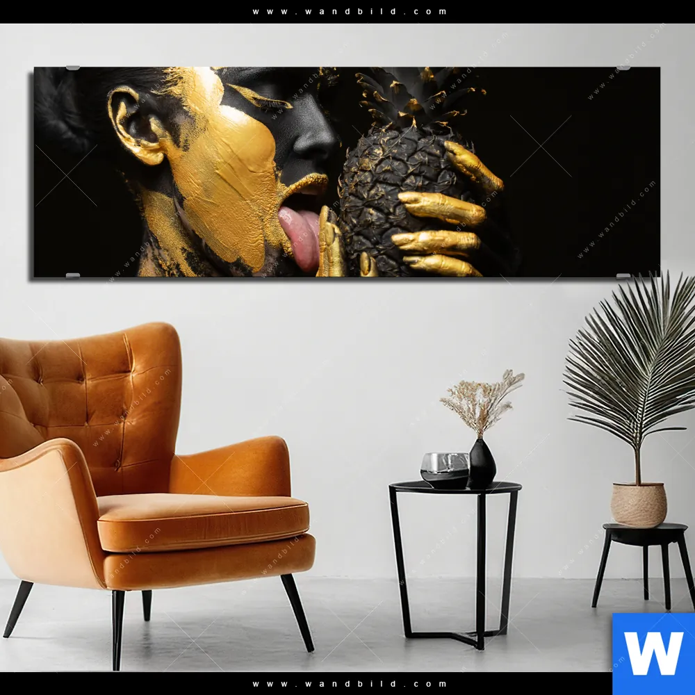Alu-Dibond Bild | Goldenes Ananasmädchen No.2 | Panorama