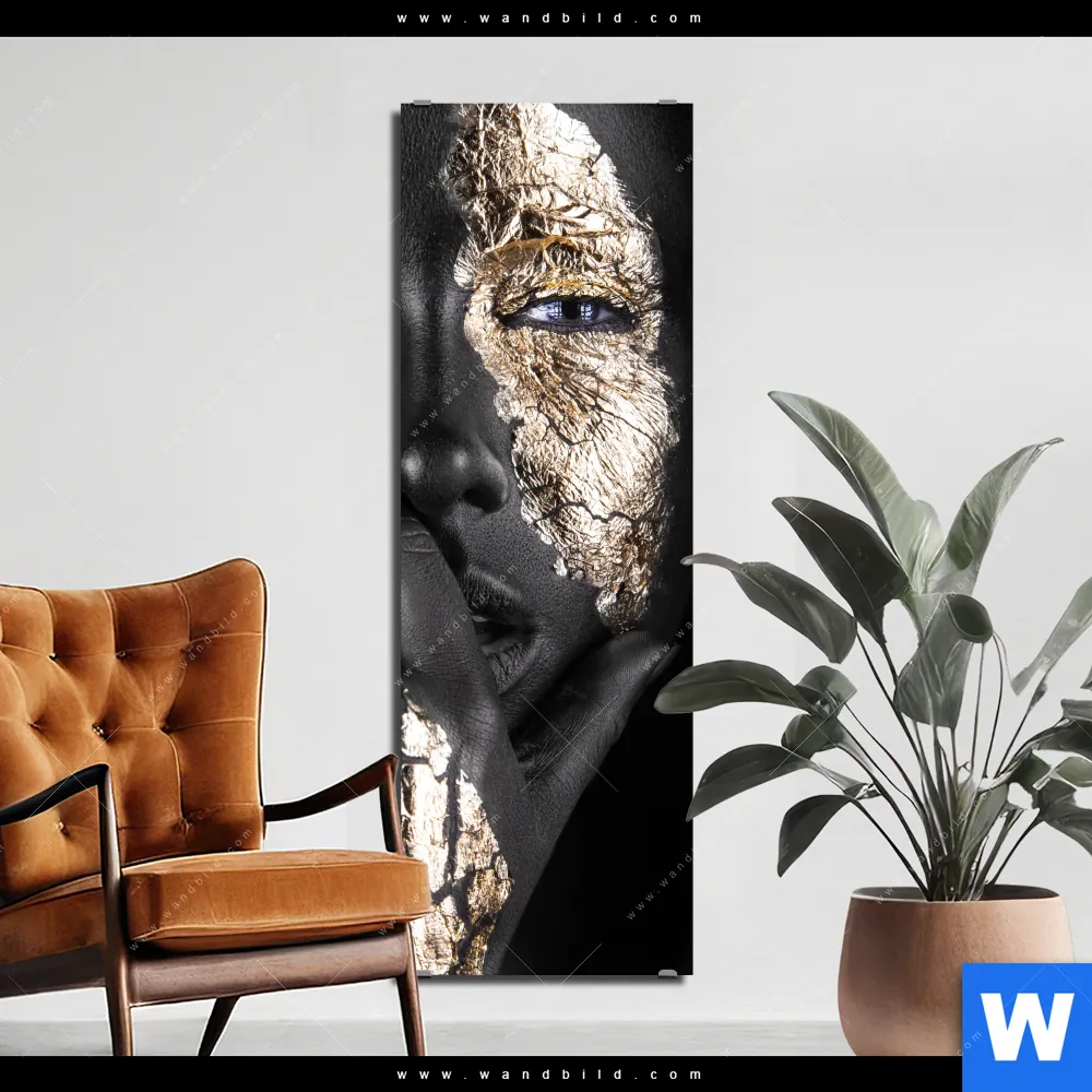 Alu-Dibond Bild | Goldenes Make-up | Schmal