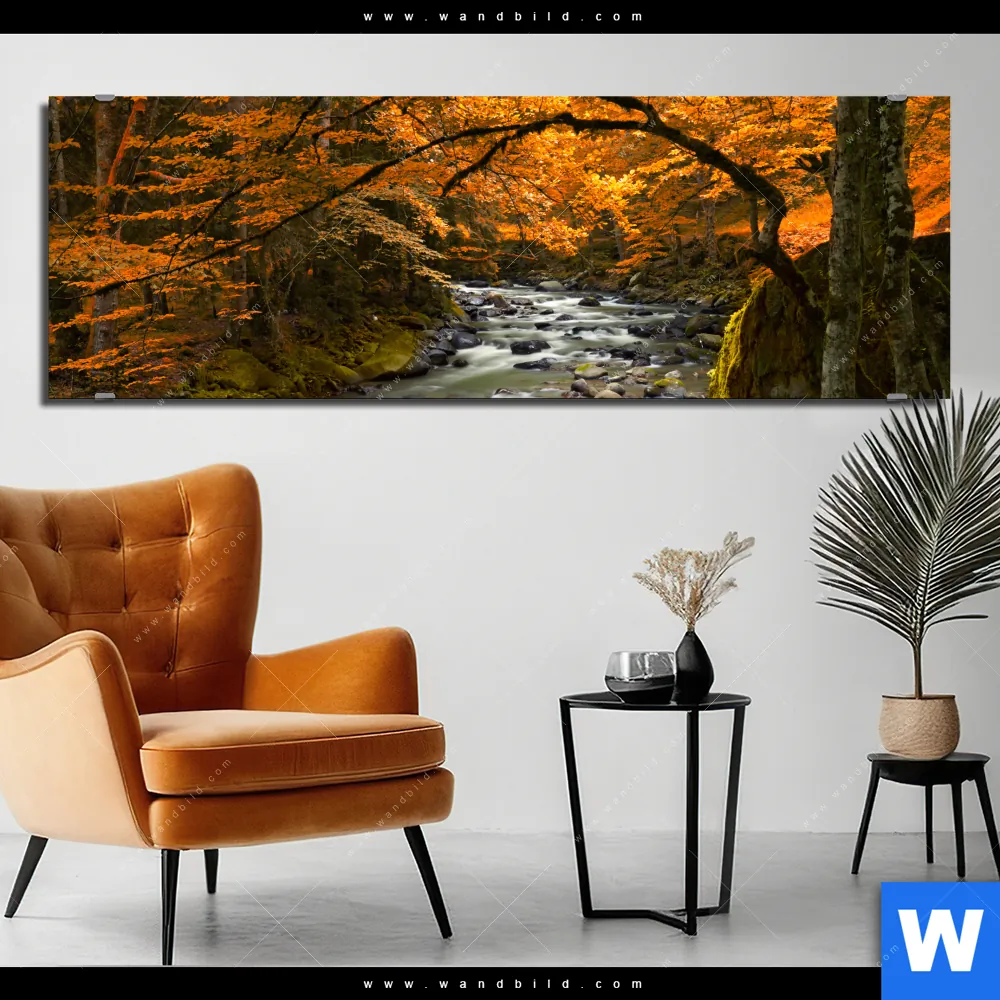 Alu-Dibond Bild | Herbstlandschaft am Fluss | Panorama