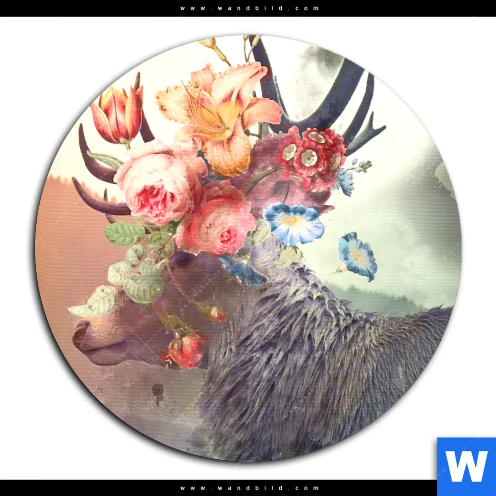 Alu-Dibond Bild | Hirsch & Blumen | Rund