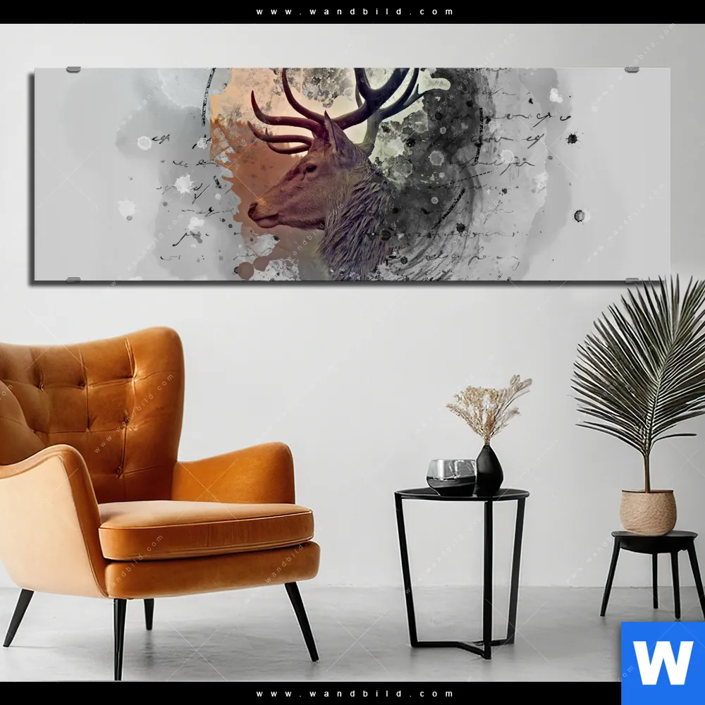 Alu-Dibond Bild | Hirsch - Grunge-Stil | Panorama
