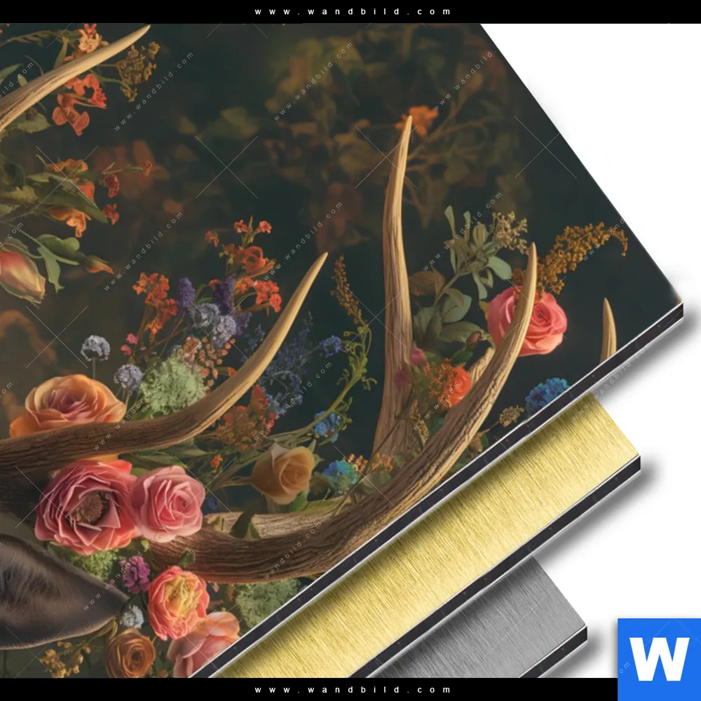 Alu-Dibond Bild | Hirsch mit floralem Geweih | Hochformat