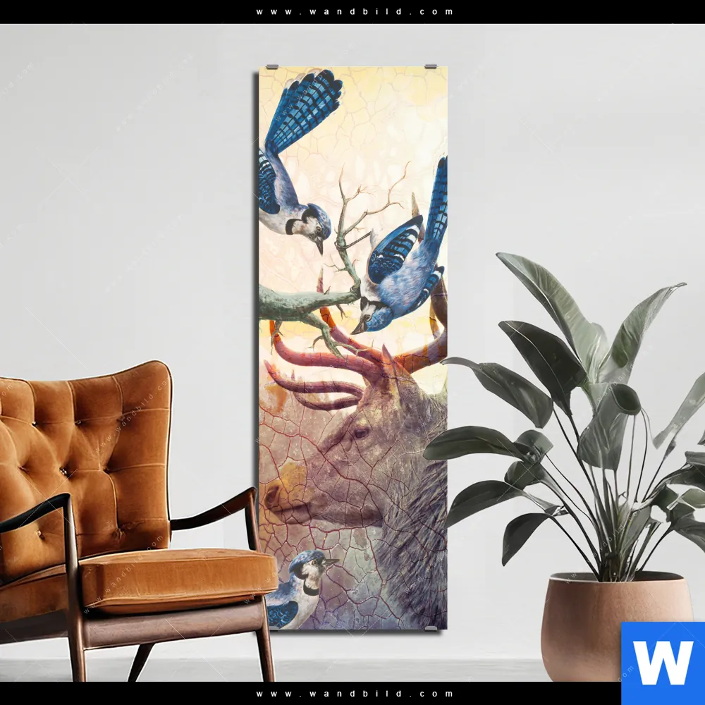 Alu-Dibond Bild | Hirsch & Vögel | Schmal
